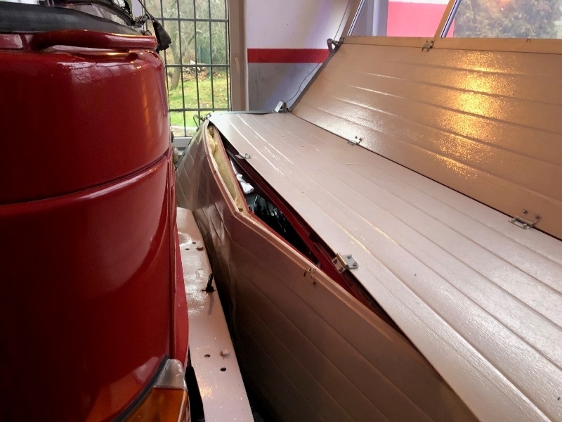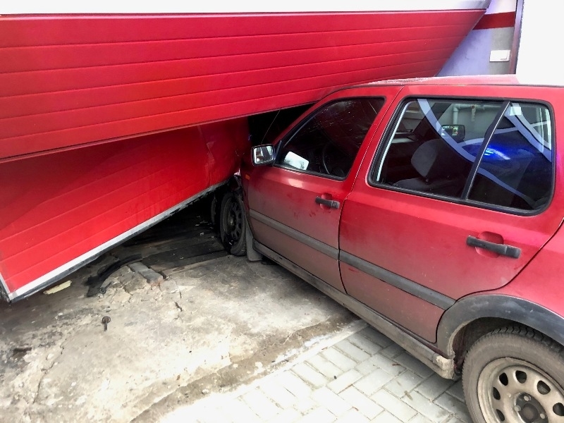 Siła uderzenia volkswagena była tak duża, że zaparkowany w garażu podnośnik hydrauliczny został przesunięty. Autem podróżowała jedna osoba. Ranny kierowca po udzieleniu pomocy medycznej przez strażaków został przekazany dla załogi zespołu ratownictwa medycznego i przewieziony do szpitala.