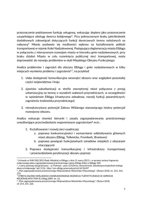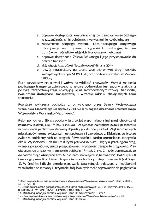 Postępująca deglomeracja miasta Elbląga w połączeniu z intensywnym rozwojem miasta w kierunku gmin nadzalewowych, przy braku działań Miasta w celu rozwinięcia publicznej sieci transportowej, może doprowadzić do rozwoju problemów w skali Miejskiego Obszaru Funkcyjnego.