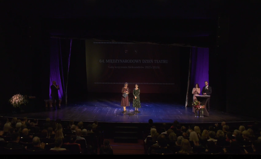 Uroczystość rozpoczęła się od odczytania międzynarodowego orędzia z okazji Międzynarodowego Dnia Teatru. W 2026 roku jego autorem był Willem Dafoe – aktor i twórca teatralny, który w swoim przesłaniu zwrócił szczególną uwagę na znaczenie teatru i relacji między aktorem a widzem. Podkreślał, że teatr ożywa właśnie dzięki obecności widzów, nawet jeśli jest ich niewielu, a jego największą siłą jest wspólne uczestniczenie na żywo w tworzeniu sztuki. W orędziu pojawiła się także refleksja o nowych technologiach i mediach społecznościowych, które ułatwiają kontakt, ale jednocześnie mogą oddalać ludzi od prawdziwych relacji i wspólnego przeżywania emocji, jakie daje teatr.