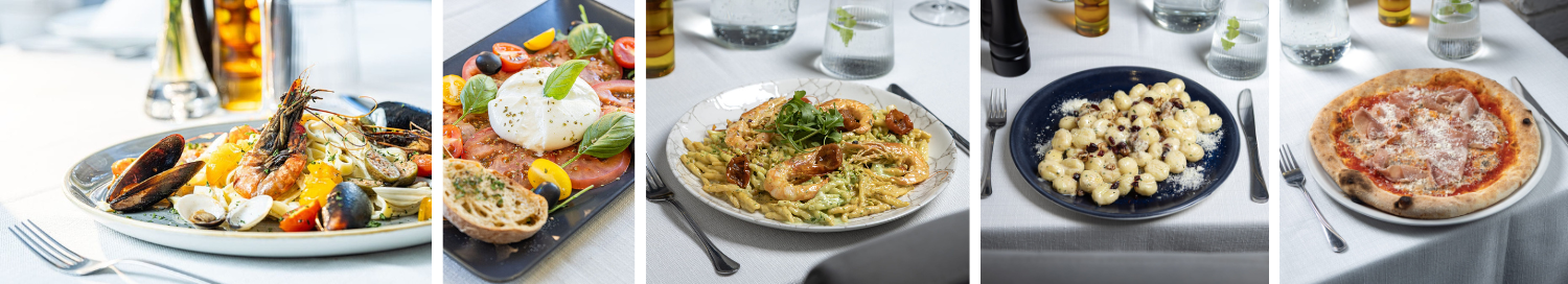 I właśnie jedzenie jest tu jedną z najważniejszych opowieści. Na stołach pojawiają się aromatyczne makarony, delikatne owoce morza, pizza z chrupiącym ciastem i ciągnącą się mozzarellą. Pachnie oliwą, świeżą bazylią, czosnkiem i pomidorami. Smaki są wyraźne, ale nieprzesadzone – takie, jakie powinny być w kuchni włoskiej. Kremowe sosy otulają makaron, owoce morza są delikatne i aromatyczne, a pizza smakuje najlepiej jedzona powoli, kawałek po kawałku, w trakcie rozmowy. To jedzenie, które nie tylko syci, ale sprawia przyjemność i zostaje w pamięci jeszcze długo po wyjściu z restauracji.