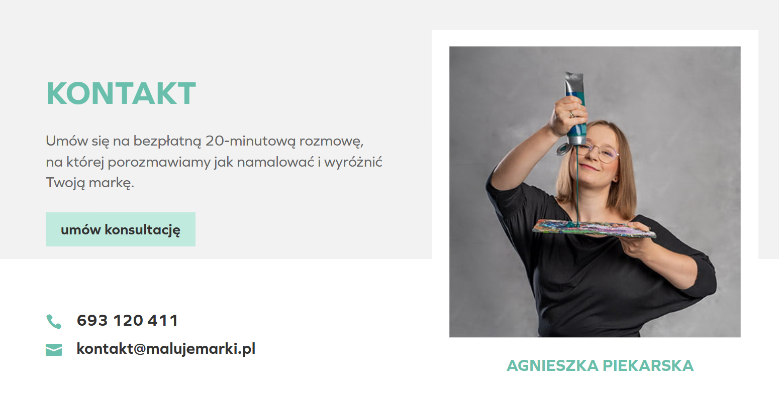 Podejście Agnieszki Piekarskiej z marki Maluję Marki opiera się na uporządkowaniu tych elementów i nadaniu im wspólnego kierunku. Branding przestaje być zbiorem przypadkowych decyzji, a staje się przemyślaną całością, która wzmacnia wiarygodność i ułatwia budowanie relacji z klientem.