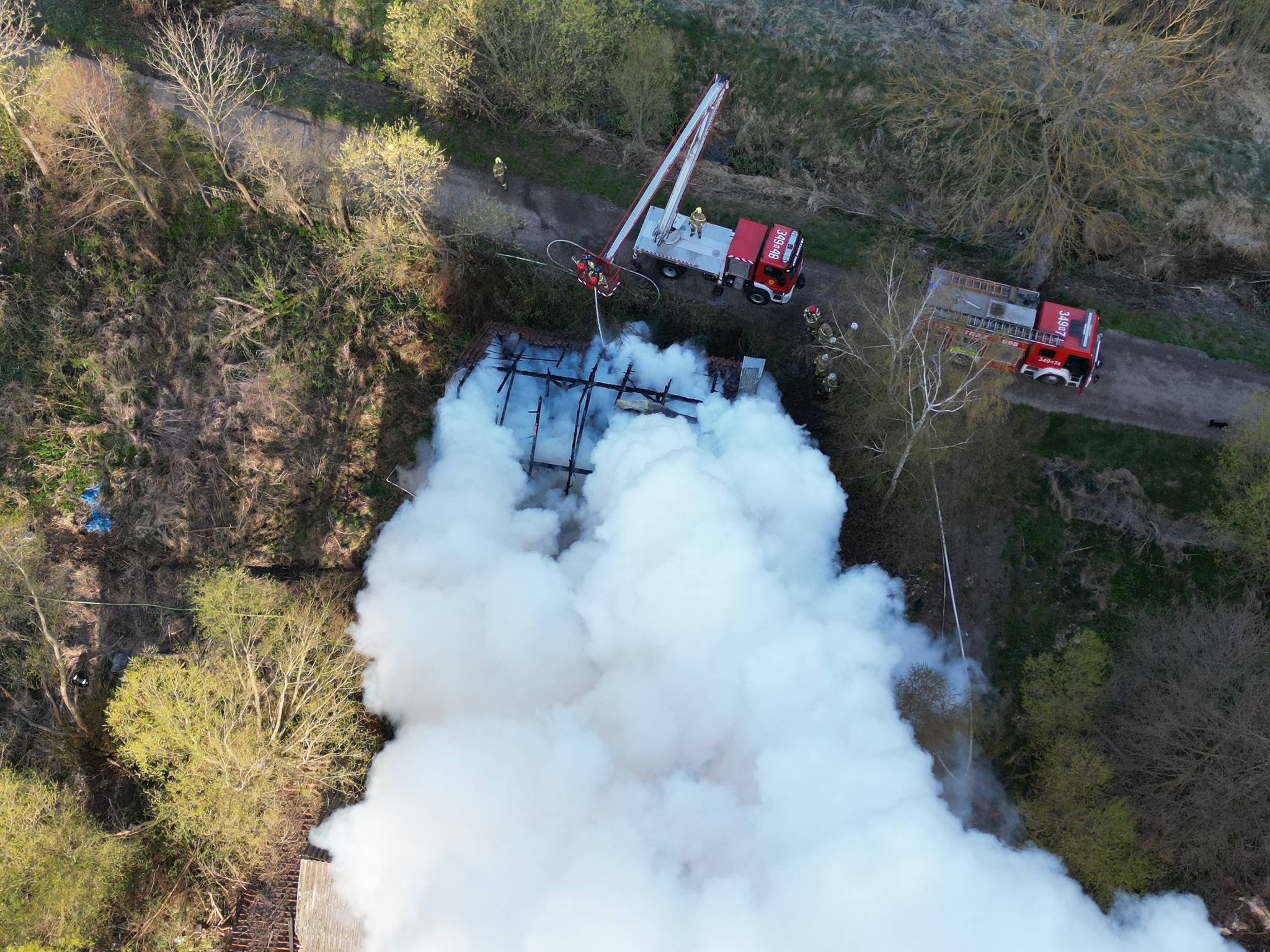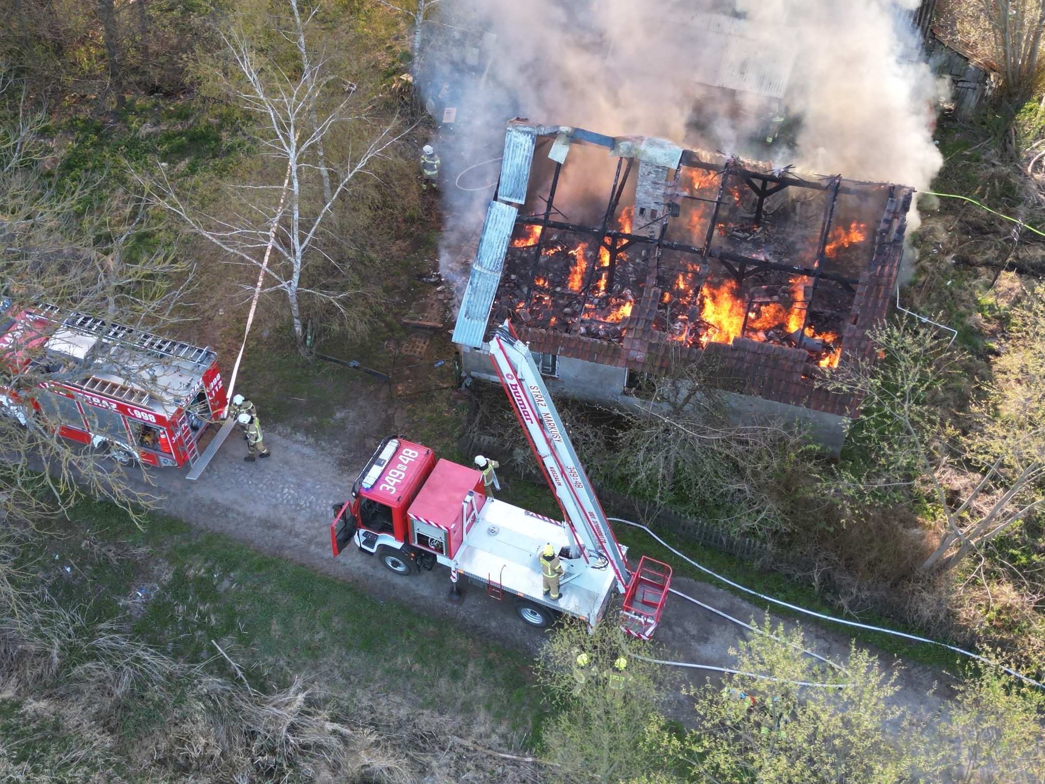 mł. bryg. Piotr WolińskiPo przybyciu na miejsce strażacy zastali pożar poszycia dachowego budynku, który w chwili zdarzenia był niezamieszkały. Działania zastępów polegały na zabezpieczeniu miejsca zdarzenia oraz podaniu dwóch prądów gaśniczych — w tym jednego z podnośnika hydraulicznego oraz drugiego do wewnątrz przez okno. Dzięki sprawnym działaniom ogień został opanowany i ugaszony.