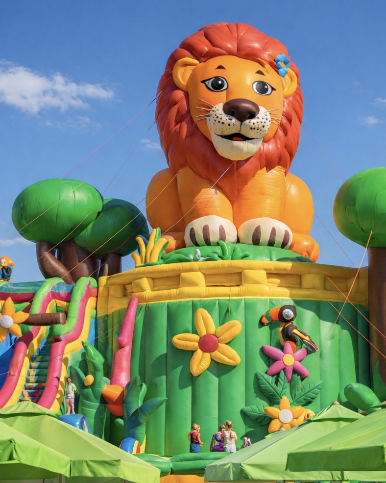 Na gości czeka kilkadziesiąt atrakcji, które łączą aktywną zabawę z odkrywaniem świata. Największą z nich jest Lew Gigant – ogromna dmuchana zjeżdżalnia, widoczna już z daleka i uwielbiana przez dzieci.