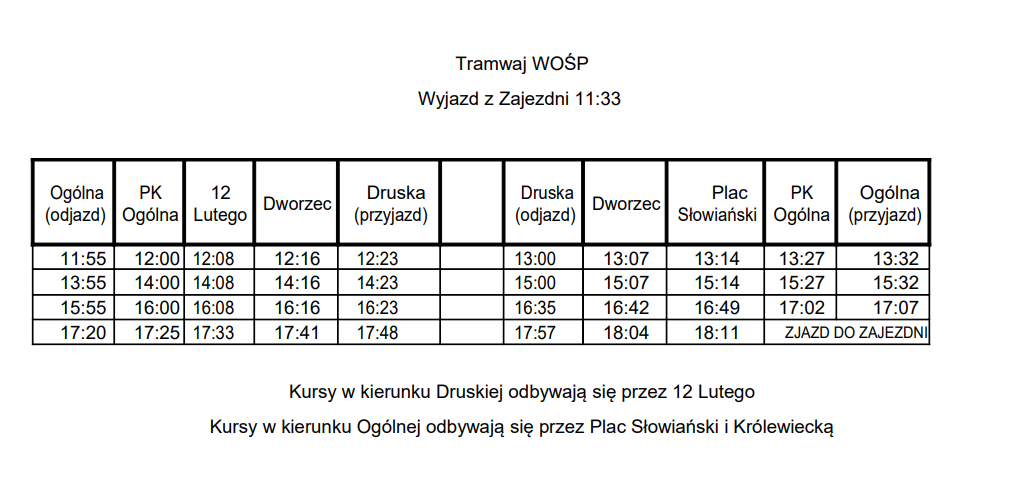 Poniżej znajdziecie rozkład jazdy.