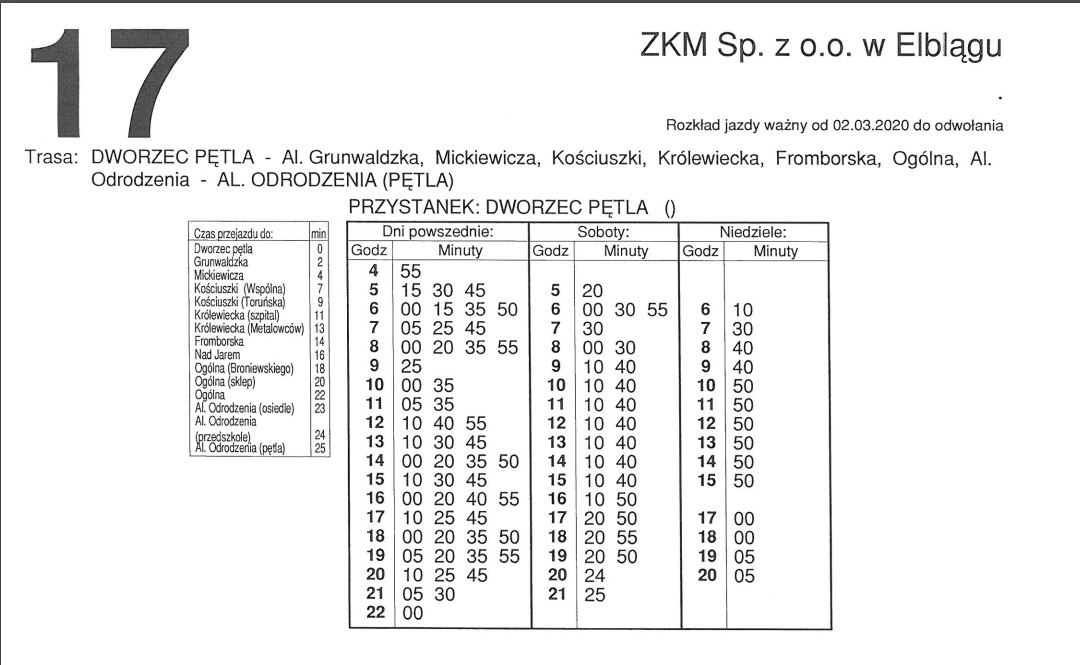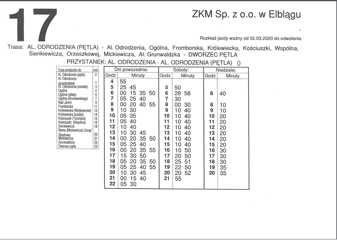 Nowy rozkład jazdy linii nr 17: szczegółowy rozkład na zdjęciach poniżej