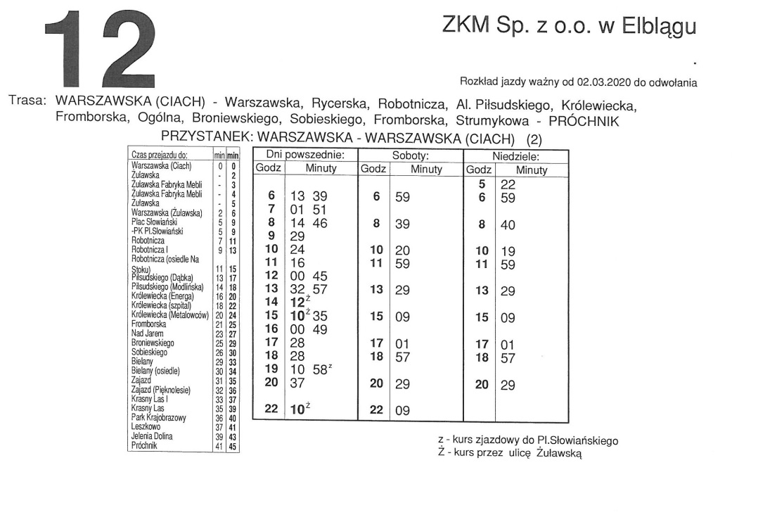 Nowy rozkład jazdy linii nr 12: szczegółowy rozkład na zdjęciach poniżej