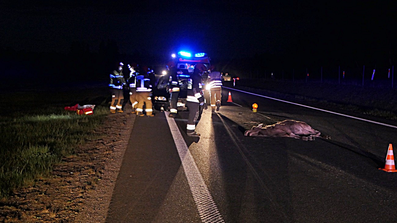 Z ustaleń drogówki wynika, że kobieta jechała pojazdem marki volvo drogą S22 w kierunku Elbląga, na wysokości 400 km na drogę wybiegł łoś, kierująca nie zdołała ominąć zwierzęcia w wyniku czego doszło do zderzenia.