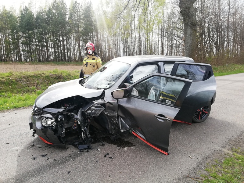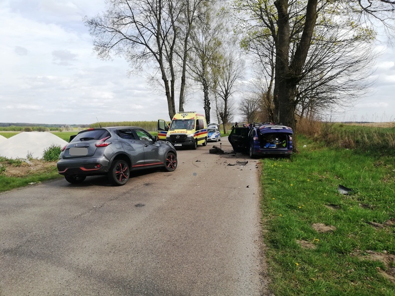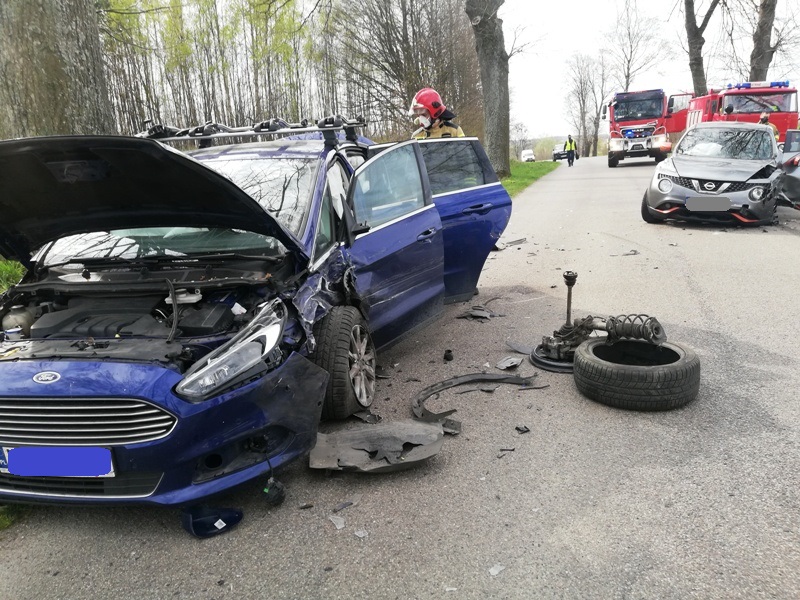 W wyniku zderzenia nissana i forda dwie osoby kierujące pojazdami zostały poszkodowane. Zespół ratownictwa medycznego po udzieleniu pomocy medycznej na miejscu wypadku przetransportował jedną osobę do szpitala.