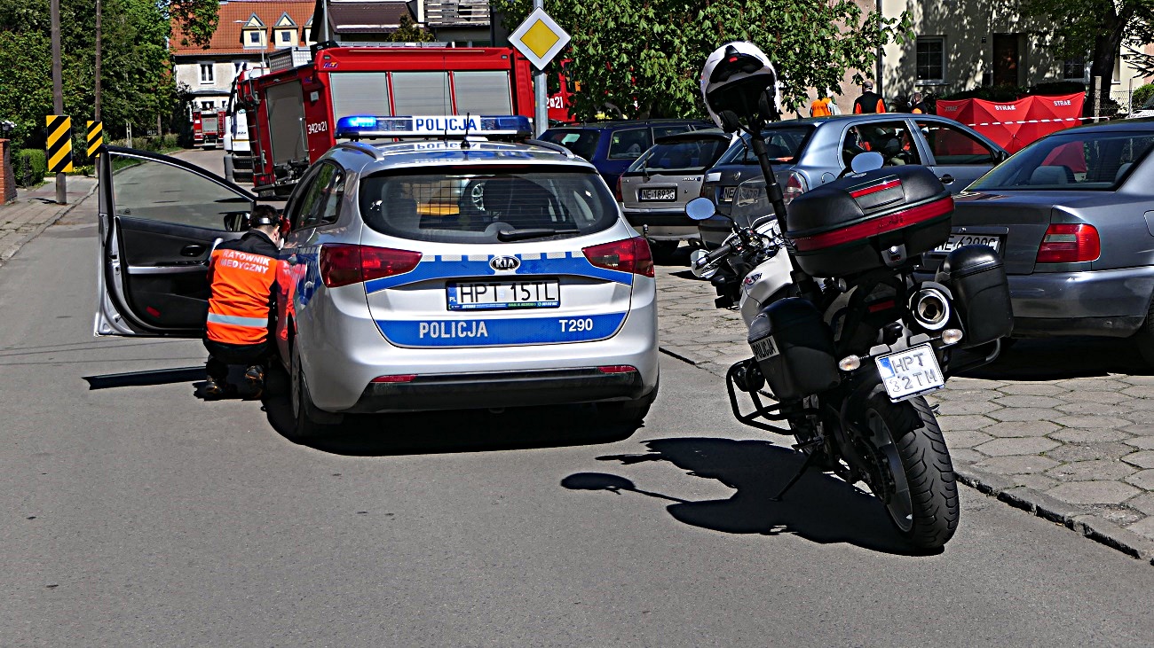 Na miejsce wypadku przyjechała drogówka, straż pożarna oraz zespół ratownictwa medycznego.