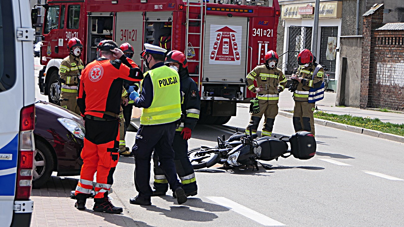 Na szczęście motocyklista nie odniósł poważniejszych obrażeń. Zdarzenie drogowe zostanie najprawdopodobniej zakwalifikowane jako kolizja drogowa i kierująca zostanie ukarana mandatem karnym.