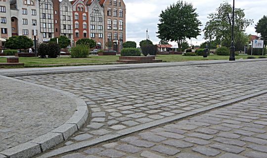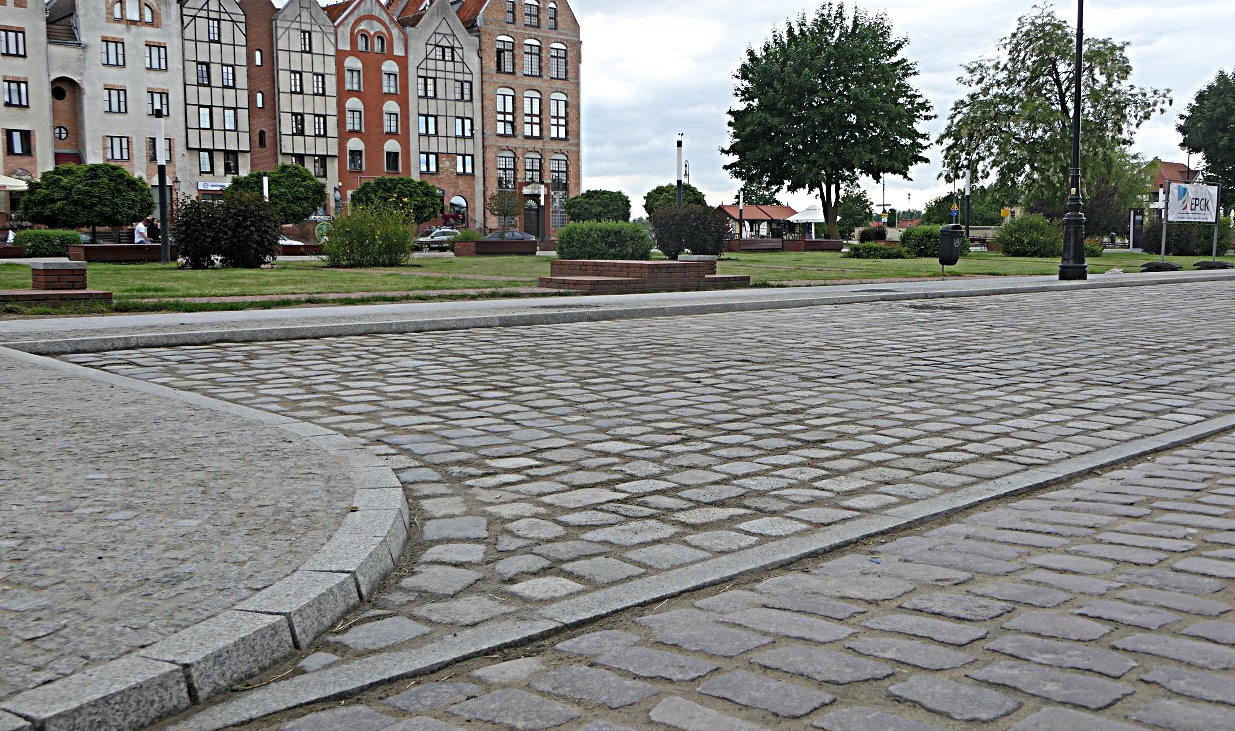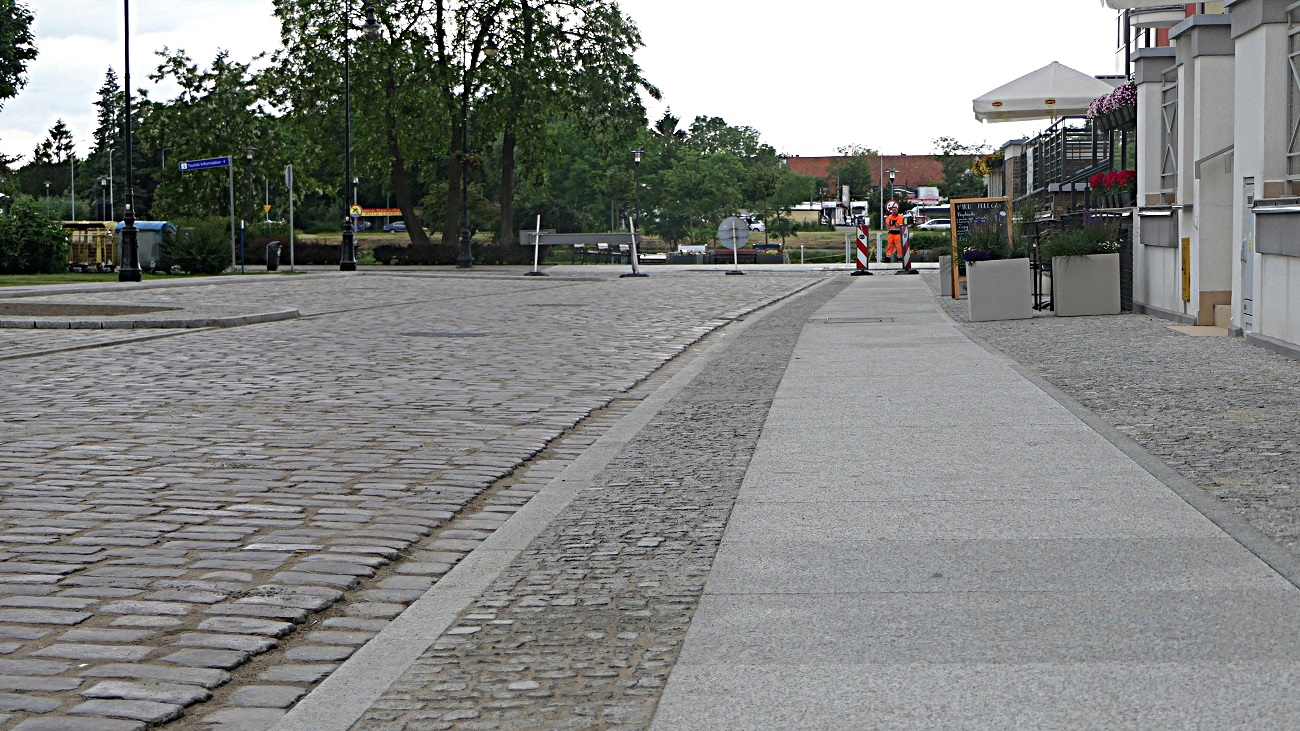 - chodniki z kostki granitowej i płytek granitowych, zlokalizowanych po obu stronach jezdni,