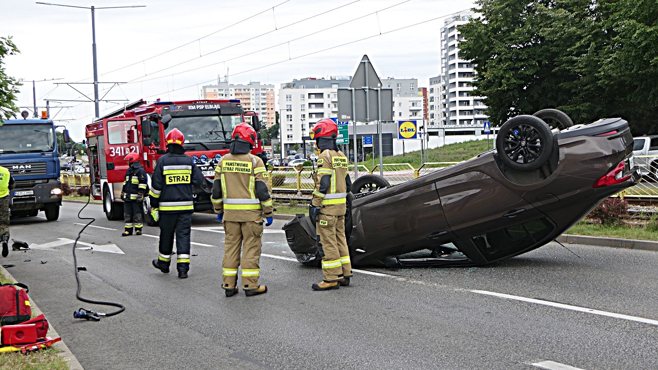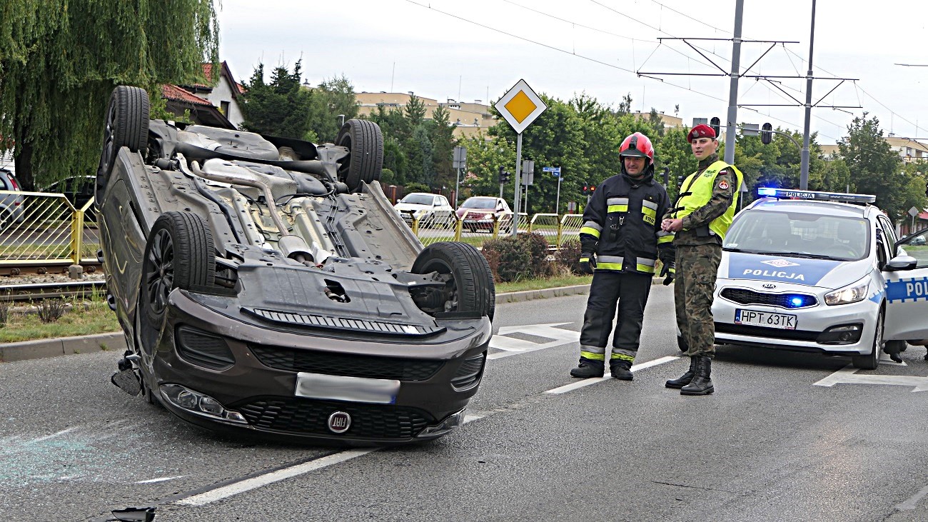 Z ustaleń policji wynika, że pojazd marki ford wyjeżdżał z parkingu Carrfour, był już na pasie do jazdy na wprost, wówczas kierujący fiatem jadąc lewym pasem, nie widząc, pojazdu zmienił pas i najechał na lewy narożnik auta w wyniku czego doszło do dachowania fiata.