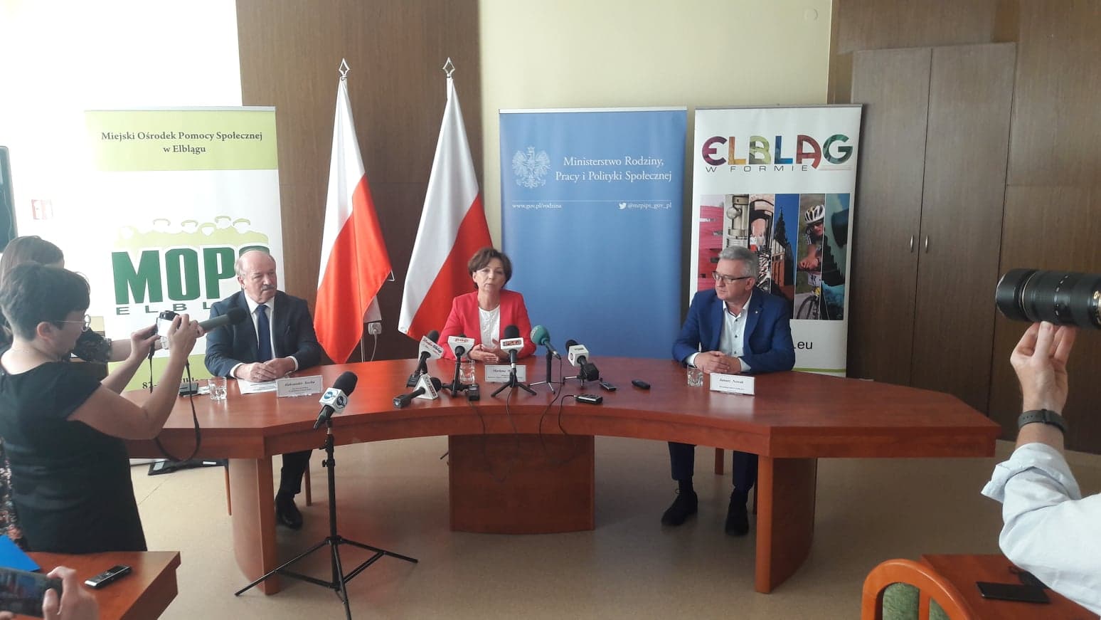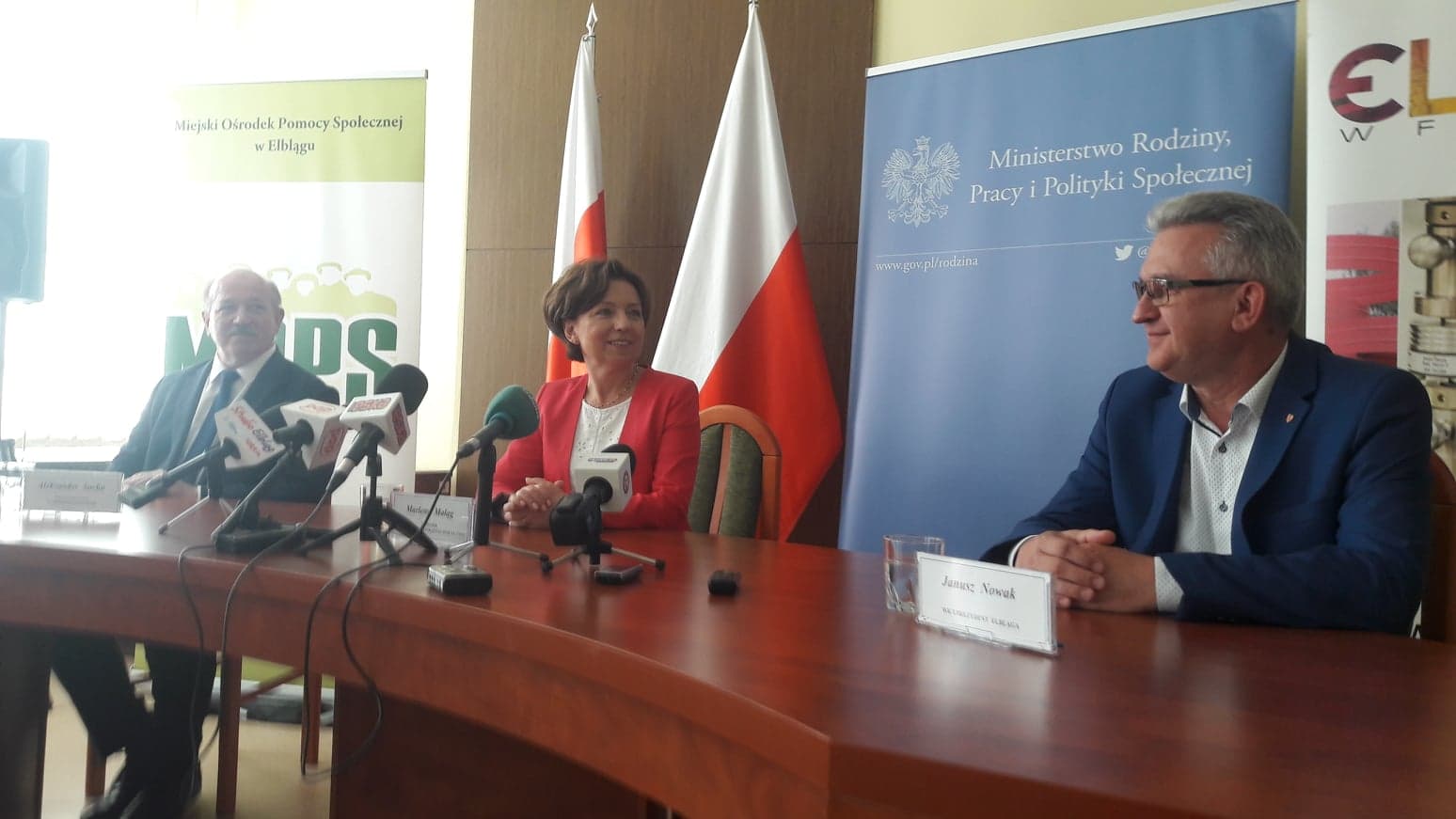 „To przede wszystkim kompleksowe wsparcie dla rodzin, zarówno z małymi dziećmi, seniorów, ale także inicjatywy związane z wolontariatem. To tak naprawdę nowatorskie spojrzenie na świadczenie usług społecznych i niezmiernie cieszę się, że tę umowę będziemy dziś podpisywać w Elblągu na 2,5 miliona złotych. Jest to druga umowa w kraju, pierwszą podpisaliśmy 3 tygodnie temu w Koszalinie.” - powiedziała na konferencji prasowej Minister Rodziny, Pracy i Polityki Społecznej Marlena Maląg.