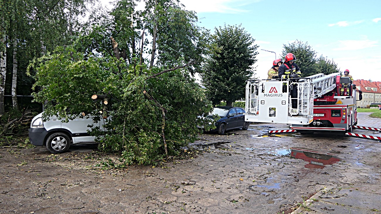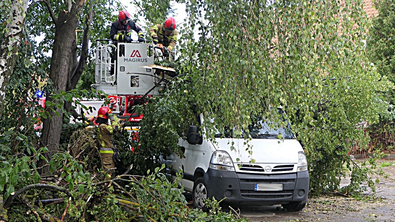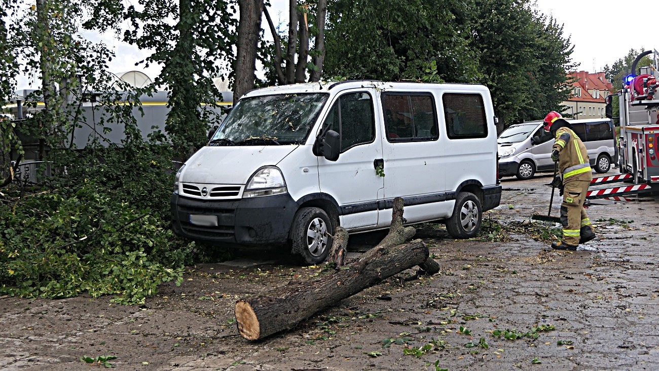 Sytuacja miała miejsce przy ulicy Dąbrowskiego w Elblągu, na miejsce przyjechała policja oraz straż pożarna. Strażacy zabezpieczyli miejsce zdarzenia, a następnie usunęli drzewo z dachu samochodu dostawczego.