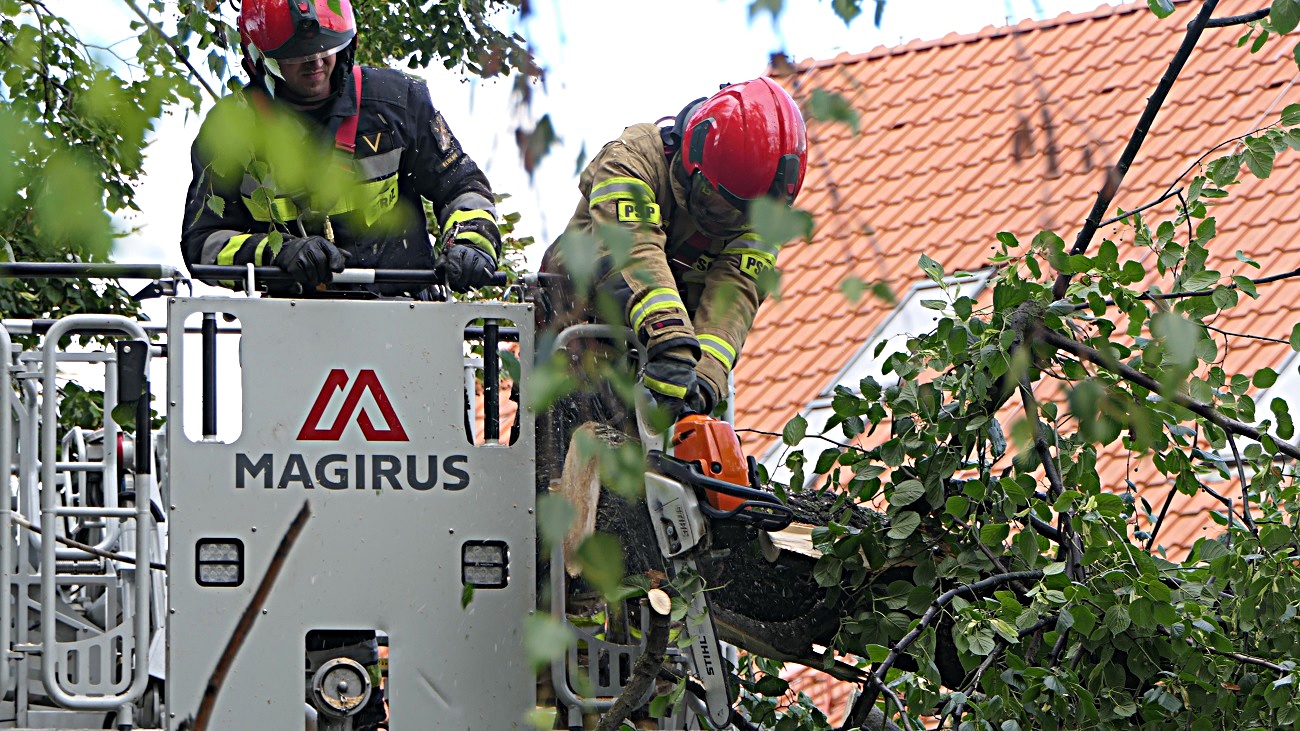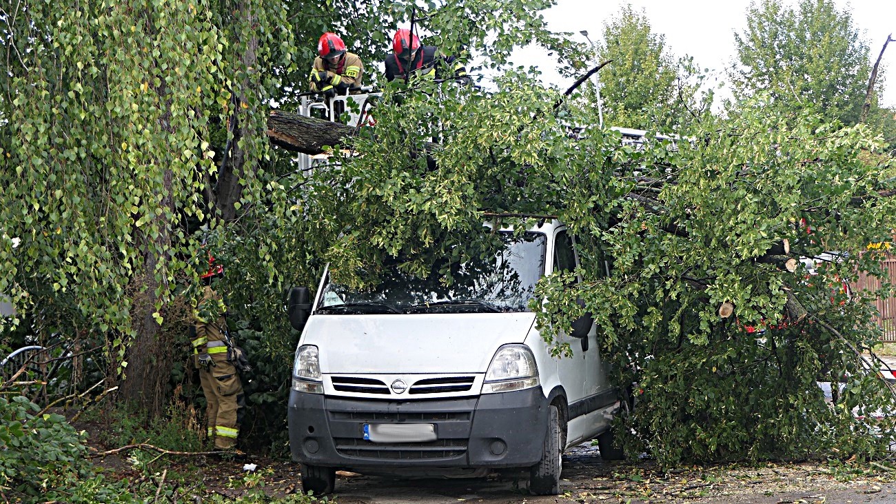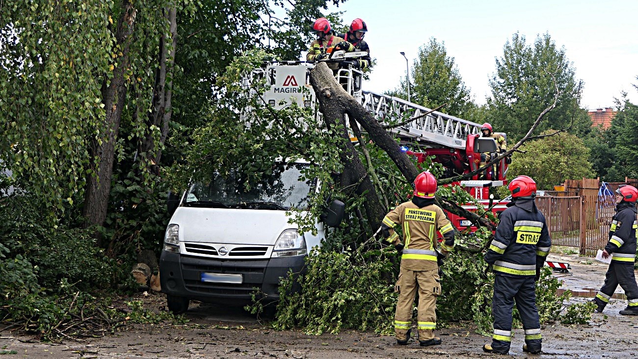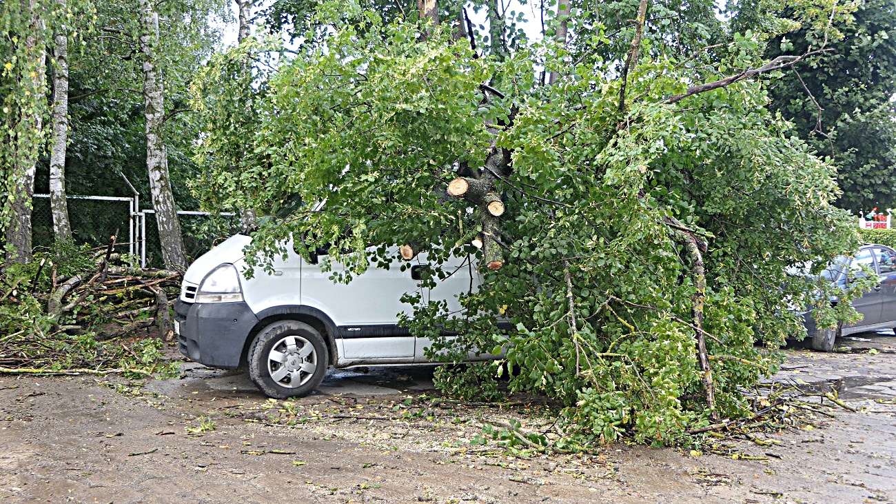 Sytuacja miała miejsce przy ulicy Dąbrowskiego w Elblągu, na miejsce przyjechała policja oraz straż pożarna. Strażacy zabezpieczyli miejsce zdarzenia, a następnie usunęli drzewo z dachu samochodu dostawczego.