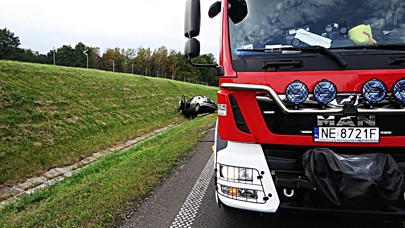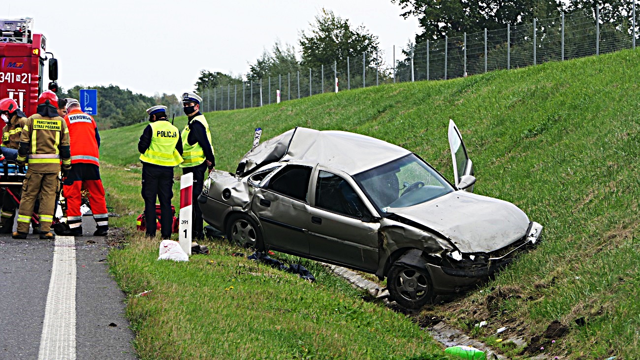 Kierowca był trzeźwy, został zabrany do szpitala, na miejscu występują utrudnienia w ruchu.