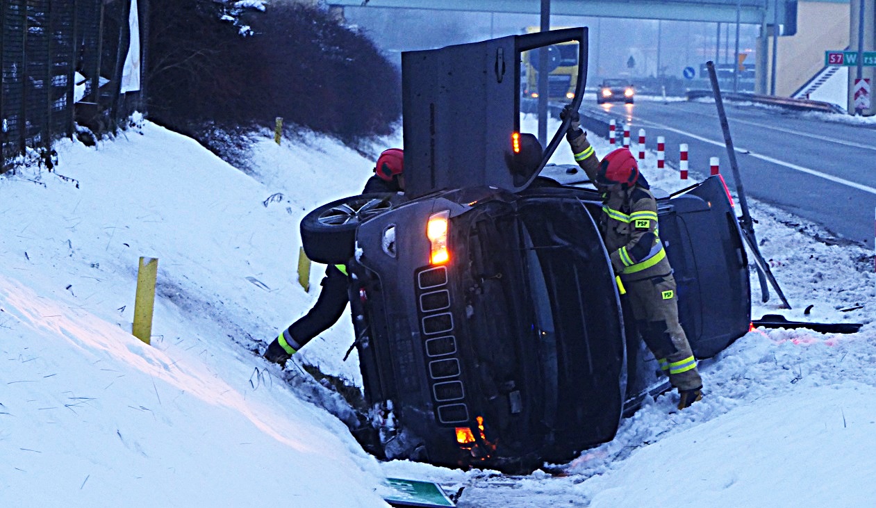 Z ustaleń policji wynika, że kierujący oplem zjeżdżając z trasy S7 wymusił pierwszeństwo i zderzył się z prawidłowo jadącym jeepem. Jeep w wyniku zderzenia wypadł z drogi.