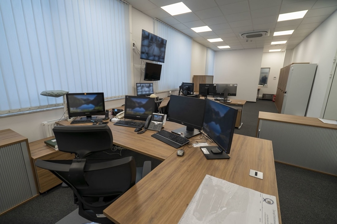 W budynku przystosowanym dla potrzeb osób niepełnosprawnych funkcjonariusze mają do dyspozycji prawie 2000 m2. Oprócz centrum służb dyżurnych znajdują się tam pomieszczenia biurowe, socjalne i magazynowe, a także nowocześnie wyposażona sala szkoleniowo-konferencyjna.