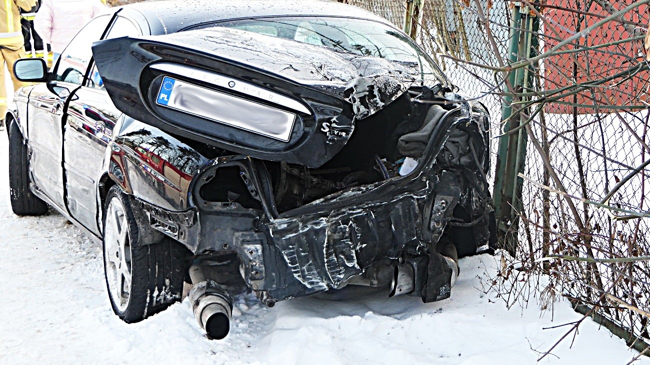 W zdarzeniu ucierpiał kierowca jaguara, nie odniósł jednak na szczęście poważniejszych obrażeń.