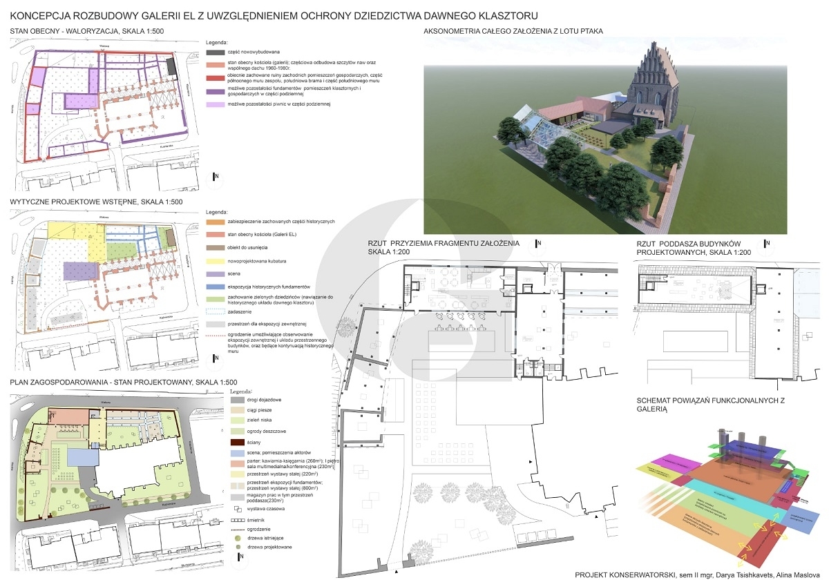 Zespół CS Galeria EL zasugerował założenia funkcjonalno-użytkowe, na których uwzględnieniu by nam szczególnie zależało - m.in. magazyn obrazów, archiwum, sala konferencyjna/kinowa, część hotelowa, biurowa, czytelnia, klubokawiarnia, sklep z pamiątkami, pomieszczenia warsztatowe - czyli to, co składa się na nowoczesną instytucję kultury mogącą w pięknych, przystosowanych, nowocześnie wyposażonych wnętrzach realizować swoją najważniejszą misję: szerzyć kulturę, edukować młodzież, integrować miłośników sztuki.