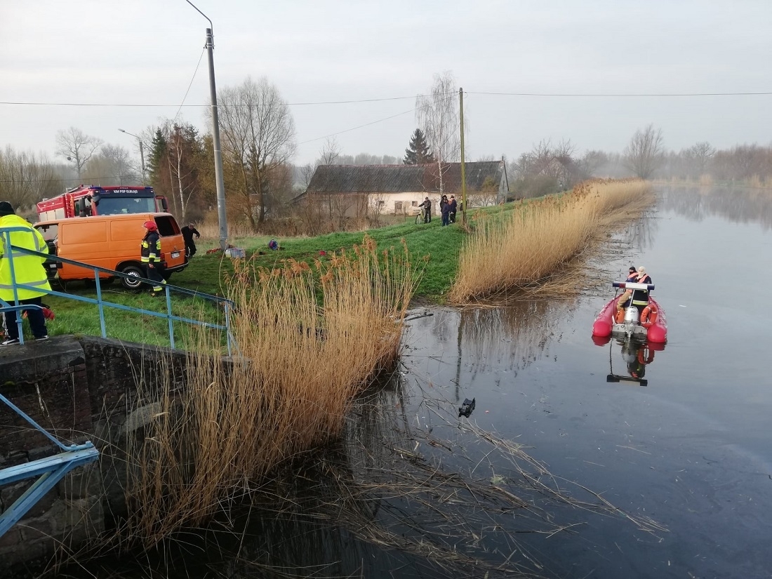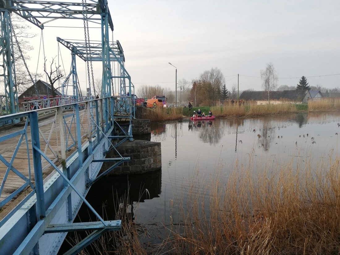 Po przyjeździe na miejsce zdarzenia dostrzegliśmy pojazd zanurzony całkowicie w wodzie i potwierdziliśmy zgłoszenie. Nie mogliśmy jednak stwierdzić, czy ktoś znajduje się w środku. Natychmiast nasi ratownicy, ubrani w stroje wypornościowe, podpłynęli do pojazdu i nurkując w wodzie zaczęli go przeszukiwać. Nie znaleźliśmy nikogo we wnętrzu pojazdu. Na miejsce w międzyczasie dotarła także jednostka z Ochotnicza Straż Pożarna w Krzewsku z łodzią oraz kilka zastępów z PSP w Elblągu, m.in. specjalistyczna grupa wodna z JRG2 oraz ciężki HDS (z żurawiem) z JRG1. Za pomocą wyciągarki jednostki PSP w Elblągu wyciągnięto pojazd z wody na brzeg. Policja zaczęła sprawdzać właściciela pojazdu, a my z pozostałymi jednostkami zajęliśmy się przeszukiwaniem brzegu w okolicy zdarzenia.