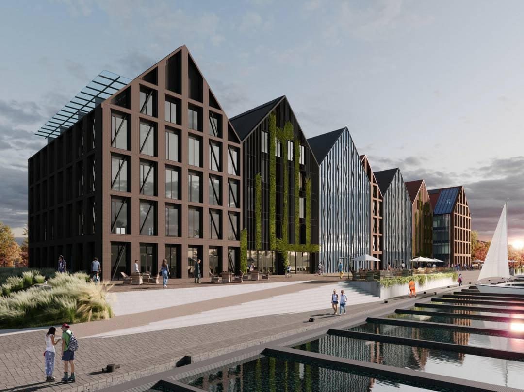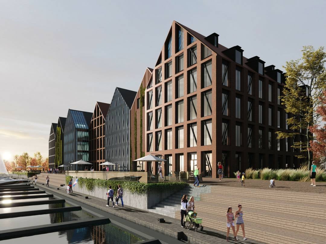 Projekt opracowywany przez pracownię PAS Projekt zakłada powstanie budynku składającego się z 7 brył z dwuspadowym dachem, zróżnicowanych pod w zakresie wykończenia elewacji i wysunięcia względem rzeki. Ze względu na historyczny walor tego terenu, inwestycja będzie realizowana zgodnie z zalecaniami konserwatorskimi.