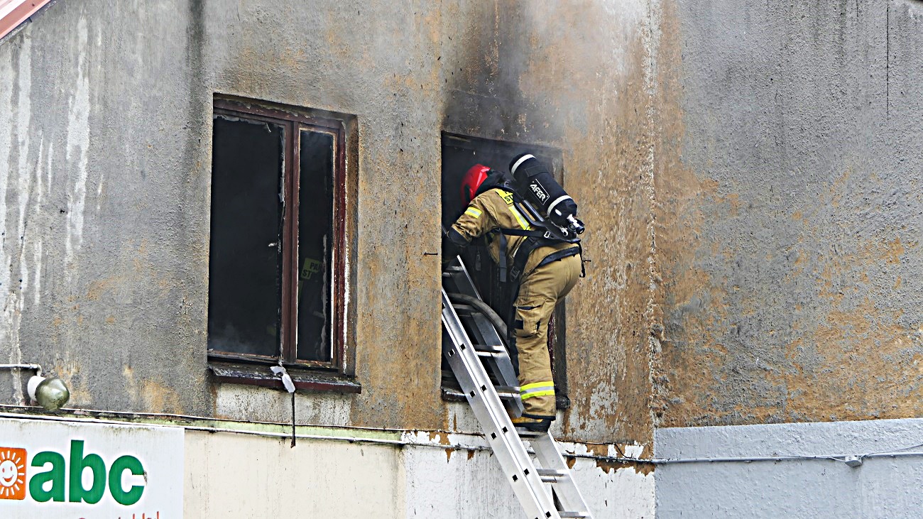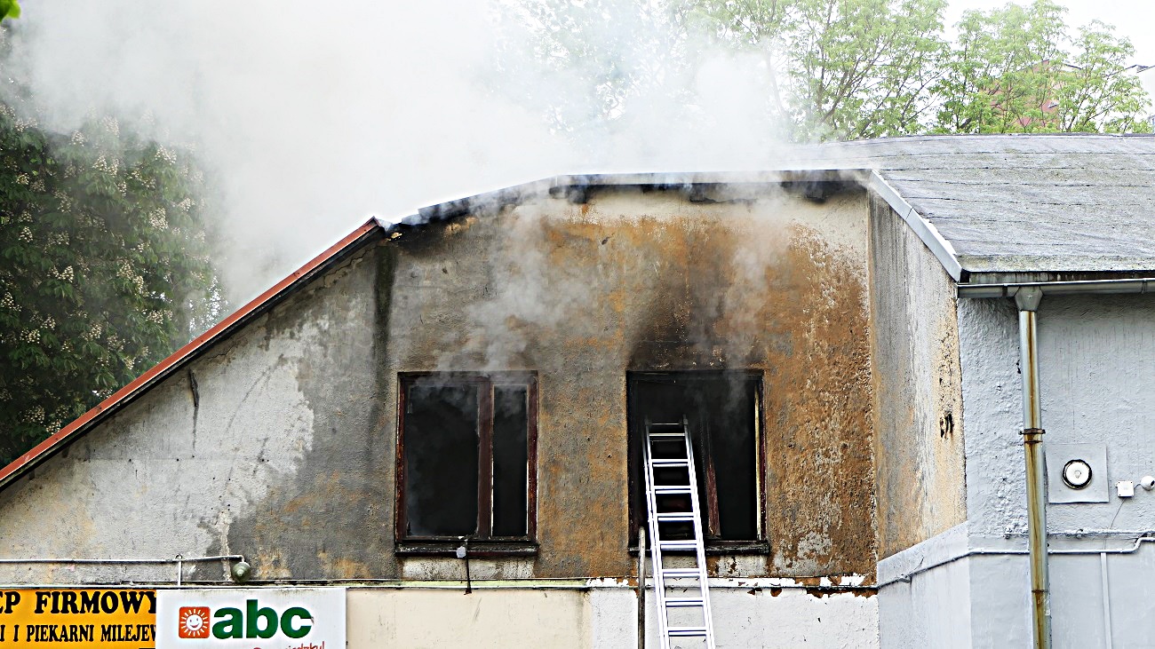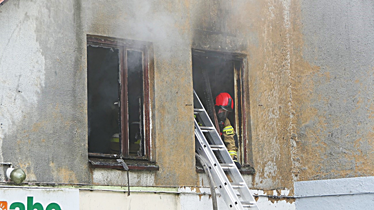 Budynek praktycznie całkowicie był zadymiony, w dodatku ze względu na część nieużytkową lokalu, był utrudniony dostęp do wejścia, strażacy weszli przez okno.