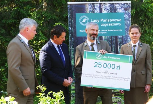 Powiat Braniewski otrzymał czek na poprawę warunków komunikacyjnych odcinka drogi Książki Bronki na kwotę 25 tysięcy złotych, 50 tysięcy złotych na drogę Krzewno-Krasnolipie oraz 30 tysięcy złotych na drogę Kowale-Glądy.