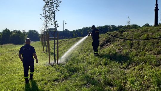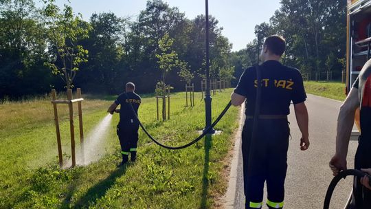 Dzięki przychylności Pani Wójt Gminy Markusy Doroty Wasik mieliśmy możliwość wziąć udział w ciekawej inicjatywie, która wyszła od elbląskich leśników. W godzinach popołudniowych udaliśmy na ulicę Marymoncką w Elblągu (Bażantarnia), gdzie swą siedzibę ma Nadleśnictwo Elbląg, Lasy Państwowe - aby przeprowadzić ćwiczenia z zakresu gaszenia pożarów zewnętrznych - przy okazji oddając przysługę dla środowiska, gdyż przy okazji - w związku z panującymi upałami - podlaliśmy dwa szpalery młodych drzewek rosnących wzdłuż drogi prowadzącej do zabytkowego zajazdu Augusta Abegga, stanowiącego siedzibę elbląskiego nadleśnictwa.