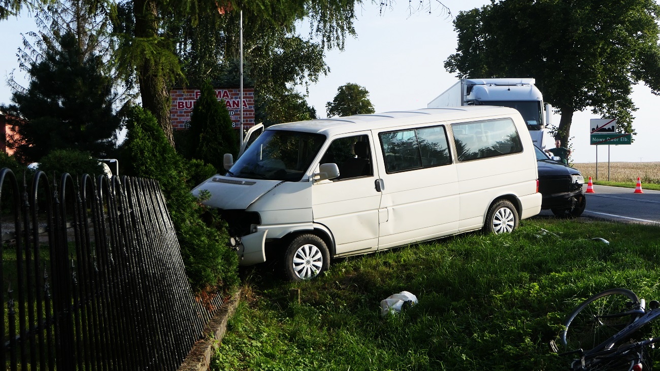Z ustaleń policji wynika, że kierująca passatem jechała w kierunku Malborka, na wysokości Nowego Dworu Elbląskiego skręcając w lewo, w posesję, nie zauważyła jadącego z naprzeciwka volkswagena, w wyniku czego doszło do zderzenia pojazdów. Transporter po zderzeniu z passatem wjechał w ogrodzenie.