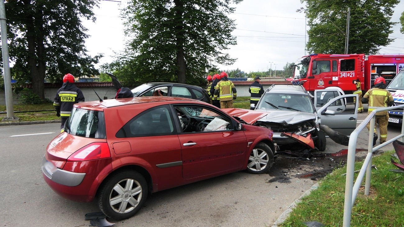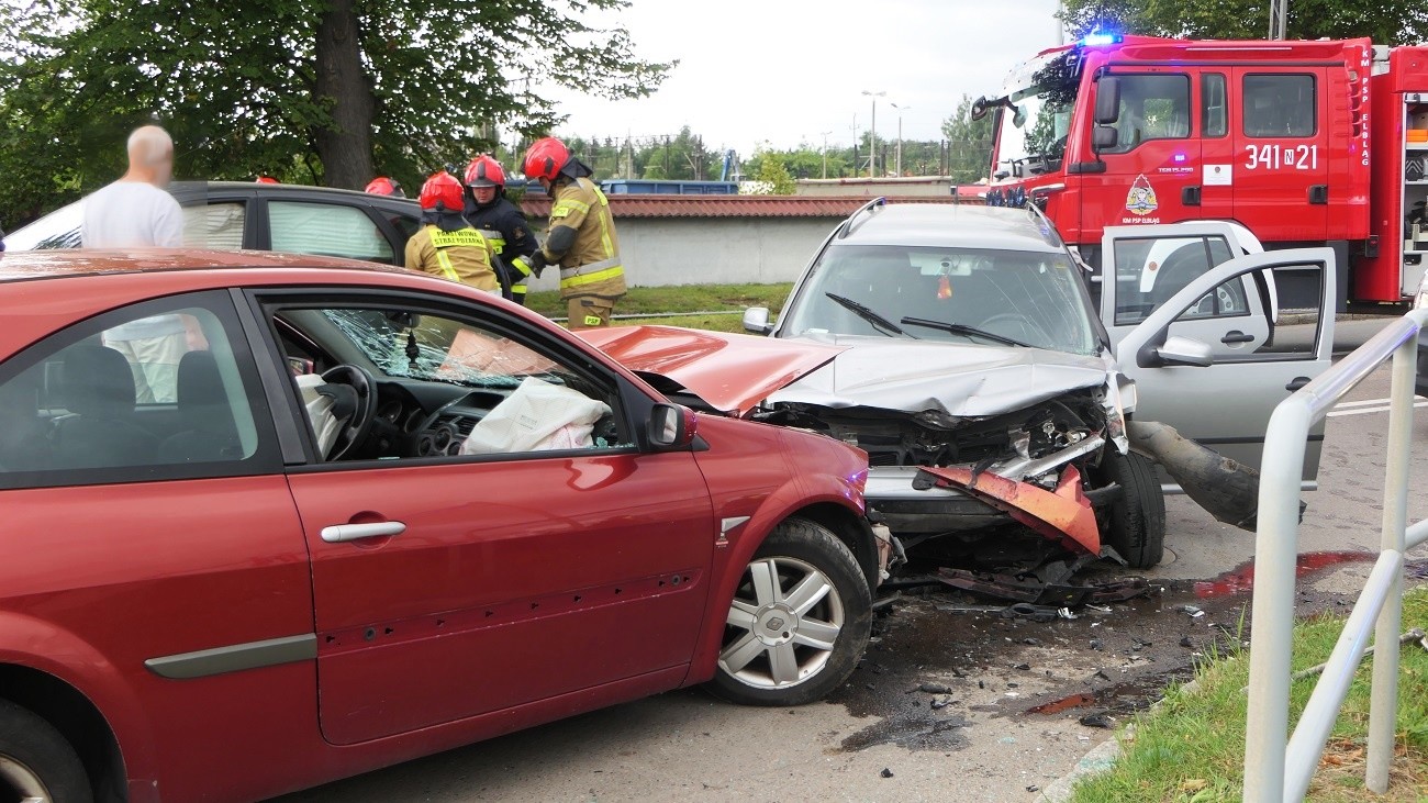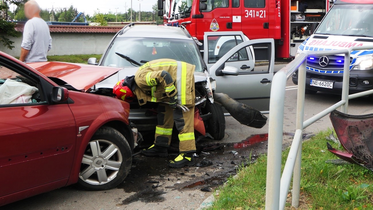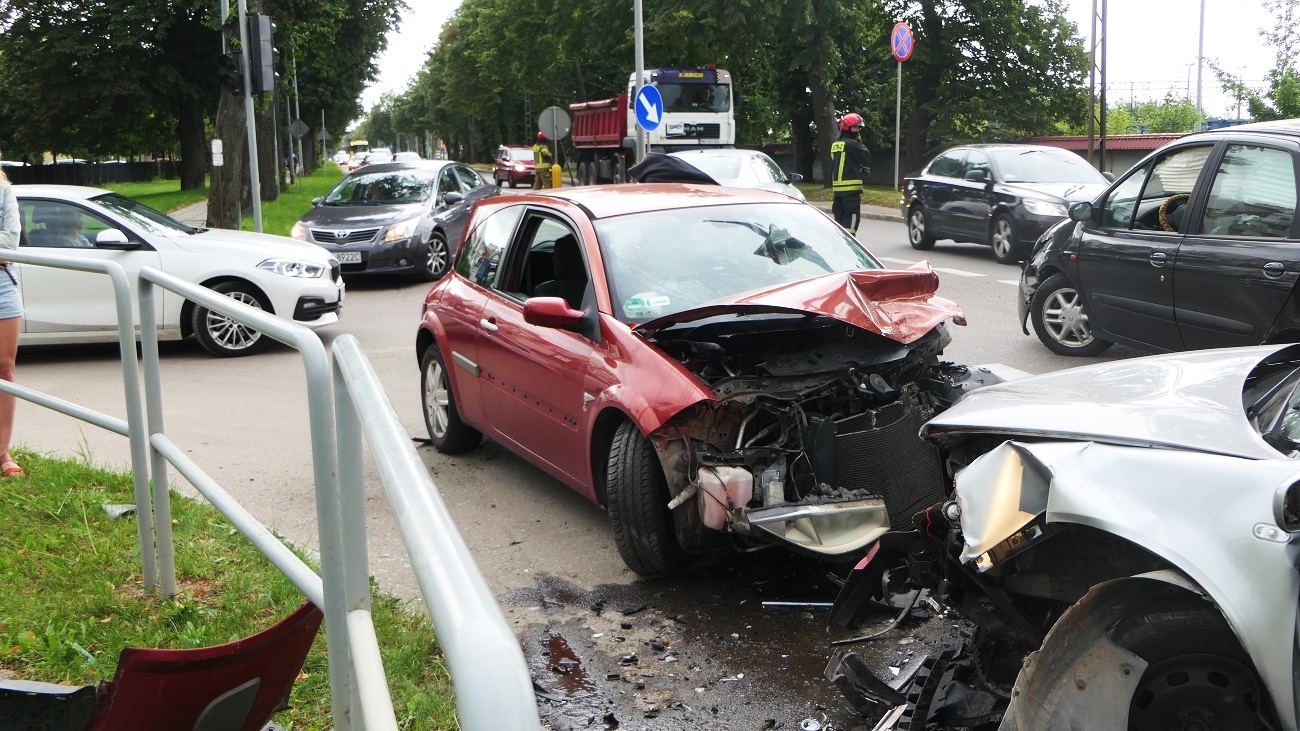 Jak przekazał nam Jakub Sawicki, rzecznik prasowy KMP w Elblągu, 57-latek, który jechał volkswagenem uderzył w stojący na światłach pojazd renault, który szykował się do skrętu w ulicę Sadową. W wyniku zderzenia pojazd marki renault uderzył w inne renault, jadące z naprzeciwka.