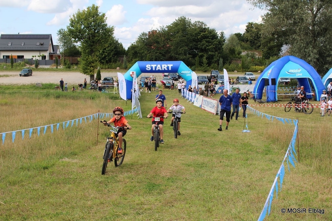 W ciepły, słoneczny dzień u podnóża góry na starcie wyścigu zameldowało się prawie 40 osób od 13 do 60 roku życia oraz niemalże 20 dzieci do 12 roku życia. Dzieciom oszczędziliśmy wspinania się na szczyt Góry Chrobrego i tak najmłodsze w wieku do 6 lat miały 100 metrową trasę u podnóża góry, prowadzącą lekko w dół. Niektóre pokonały ją na rowerkach biegowych, niektóre na 2 lub 4 kółkach. Brawo! Dzieci starsze 7-12 lat musiały już pokonać 150 metrów, lekko pod górkę i przejechać przez trzy rowy po drewnianych balach. Tu także młody narybek MTB pokazał się z bardzo dobrej strony, a co ciekawe, dziewczynki często okazywały się szybsze od chłopców.