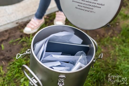 kapsule umieszczone zostały prywatne listy, zdjęcia i wiadomości dla innych. Podczas Uroczystej Sesji uczestnicy napisali wiele ciepłych słów i życzeń do naszych następców. Swoje wpisy złożyli między innymi Pani Prezydent Gdańska Aleksandra Dulkiewicz, Marszałek Województwa Pomorskiego Leszek Bonna, Prezes Lokalnej Organizacji Turystycznej Adrian Bogusłowicz, Burmistrz Pucka Pani Hanna Pruchniewska oraz wielu innych gości. Bardzo dziękujemy naszym mieszkańcom i gościom za ten przekaz i włączenie się do wydarzenia. Instytucjonalnie swoje przesłanie złożyły Miejska Biblioteka Publiczna, Miejski Ośrodek Publiczny oraz Urząd Miasta wraz z Miejska Radą. Samorząd w kapsule zamieścił: Statut Miasta, Raport o stanie gminy za rok 2019 oraz 2020, wspólne zdjęcie pracowników urzędu miasta wraz z życzeniami, lokalny Dziennik Bałtycki z 18 września, kilka gazet ogólnopolskich, przemówienie okolicznościowe Przewodniczącej Rady Miejskiej Pani Anny Marii Jaworskiej i Burmistrza Miasta, wizytówki wszystkich Radnych oraz przemówienie Przewodniczącej Rady Miejskiej Krynicy Zdrój Pani Ireny Weber Greleckiej.