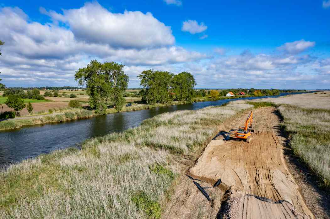 - Etap drugi polega na obudowie brzegów rzeki Elbląg, przebudowie kolizji teletechnicznych oraz energetycznych, a także wykonaniu odcinka dogi powiatowej i mostu obrotowego nad rzeką Elbląg. W tym momencie jesteśmy na etapie wykonywania dróg technologicznych oraz robót wzmocnieniowych pod nasypy drogowe, które są wykonywane w technologii drenów prefabrykowanych i nasypów przeciążeniowych, a także kolumn betonowych, zbrojonych profilami stalowymi - mówi Michał Tersa, Z-ca Kierownika Kontraktu z firmy Budimex SA.