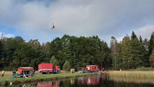 W niedalekiej odległości od miejsca zdarzenia zawiązano sztab z wykorzystaniem samochodu dowodzenia i łączności KM PSP w Elblągu. Zorganizowano łączność na terenie działań poprzez wyznaczenie kanałów ratowniczo gaśniczych (KRG), kanału dowodzenia i współdziałania (KDW) oraz kierunku operacyjnego (KO). Dzięki sprawnej współpracy sztabu, zespołów zarządzania kryzysowego oraz nadleśnictwa na miejsce zdarzenia udało się skierować helikopter z podwieszanym zbiornikiem wody przystosowanym do zrzutu środka gaśniczego oraz samolotu typu Dromader z 2000 litrów wody.