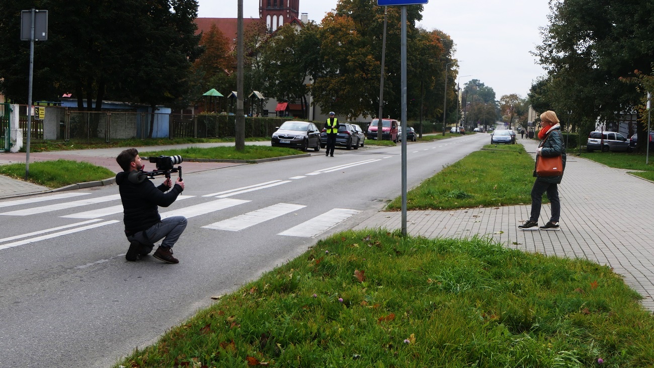 Sceny do filmu kręcone były dziś na ulicy Wiejskiej w Elblągu. Spot dotyczący bezpieczeństwa na przejściach dla pieszych powstaje przy współpracy z elbląską policją.