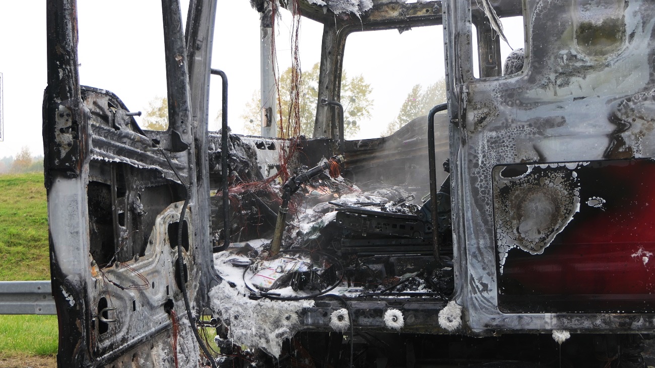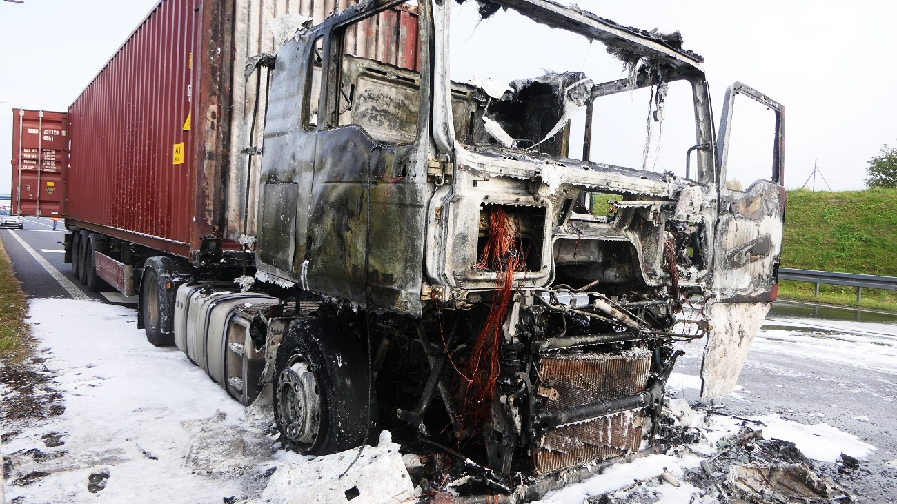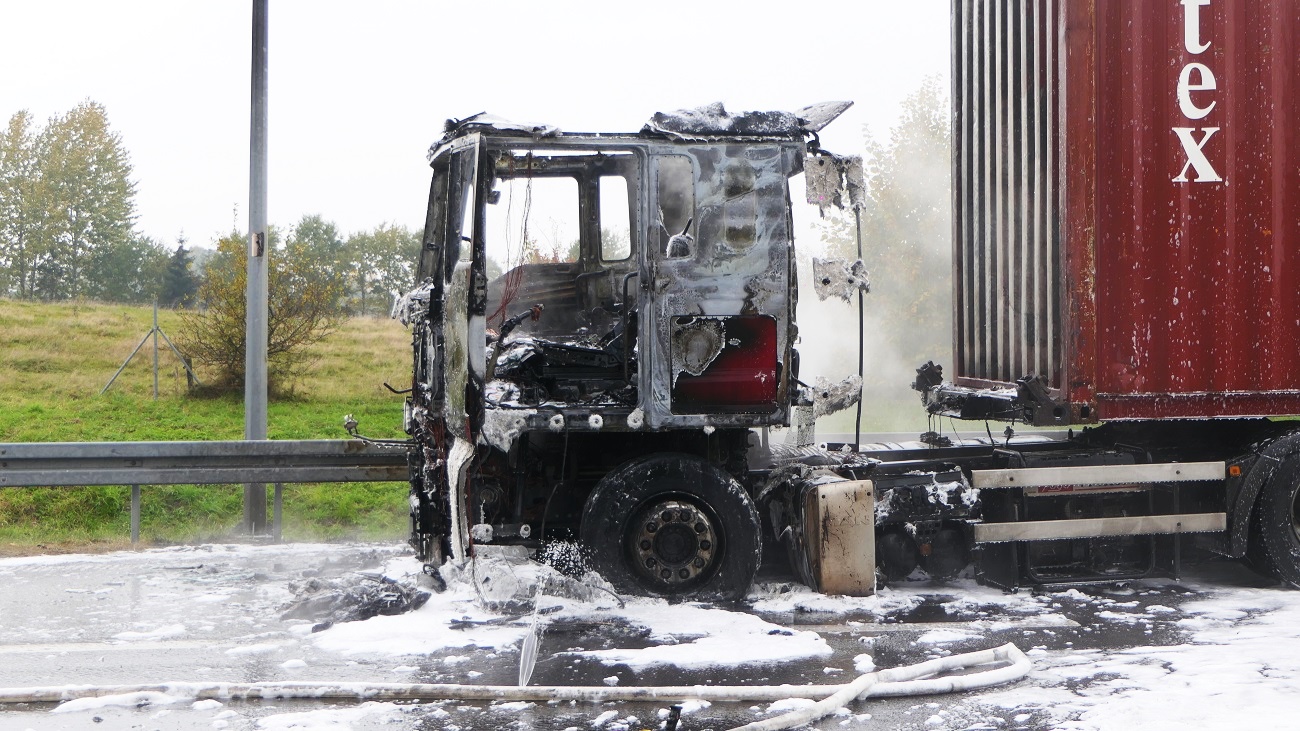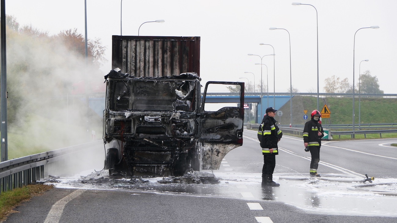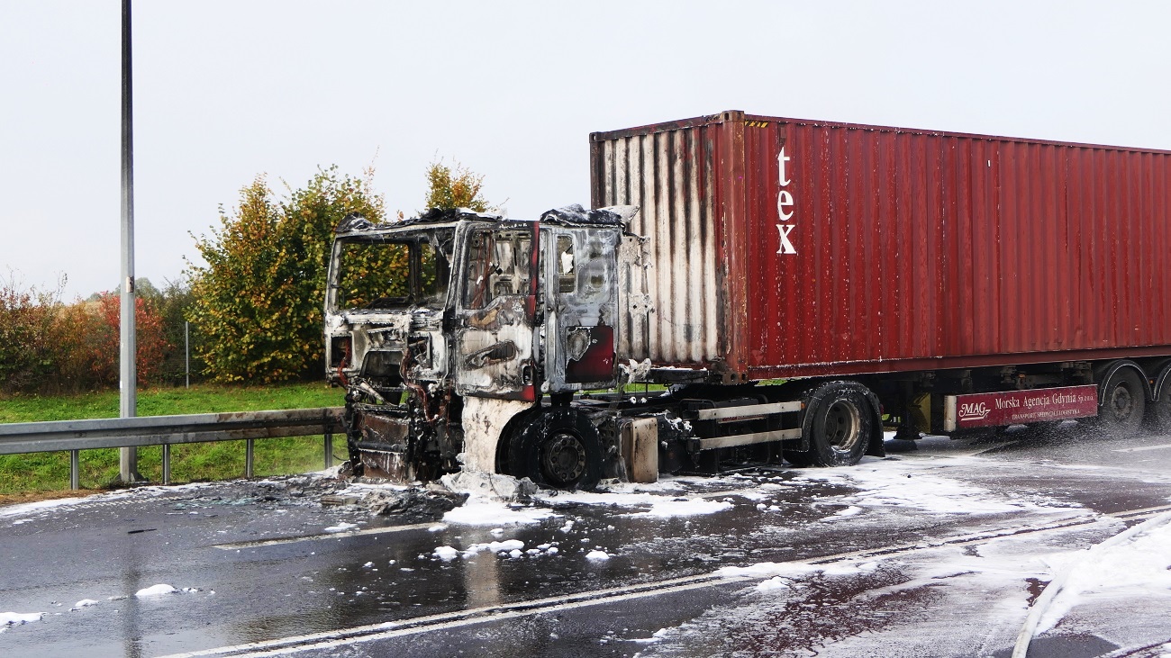 Do pożaru doszło na drodze S22 (trasa Elbląg-Braniewo) na 393 km. Na miejsce przyjechała policja i straż pożarna.