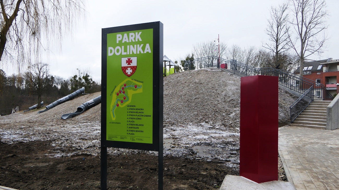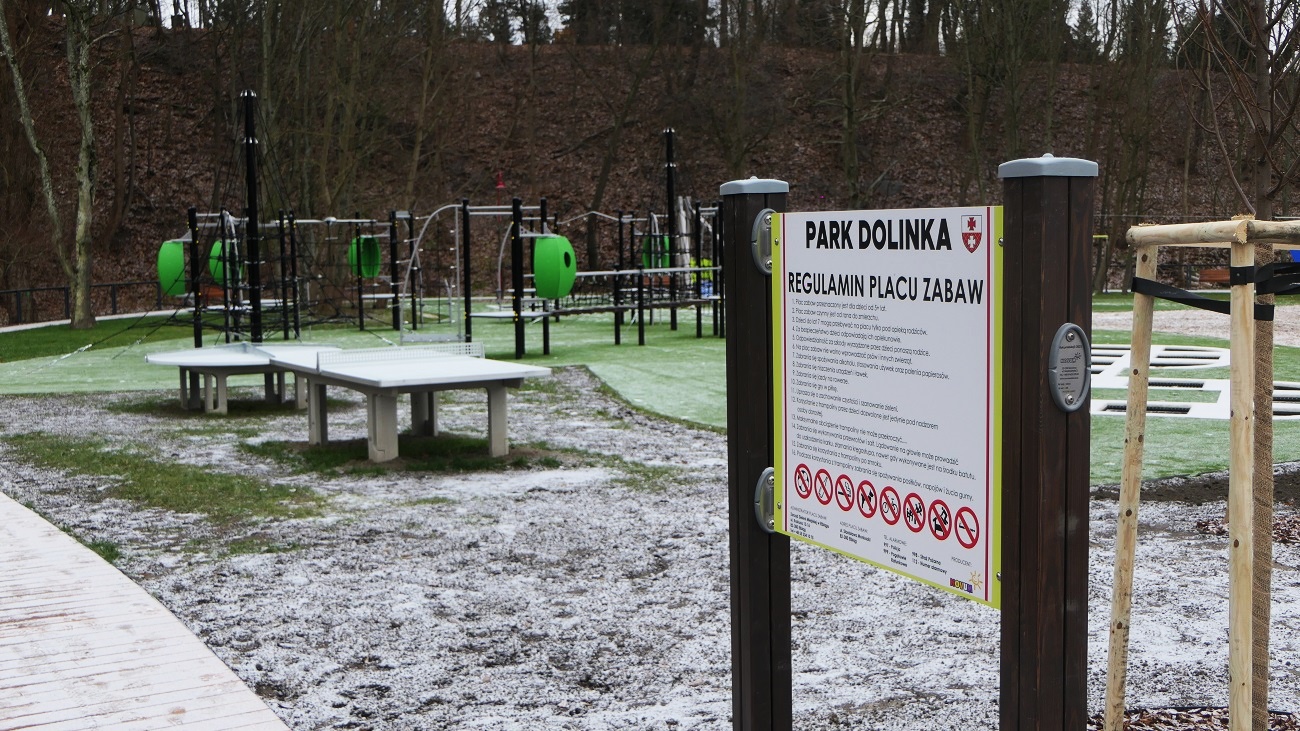 Etap II, to dostawa i montaż urządzeń wraz z zagospodarowaniem stref w Parku Dolinka w Elblągu.