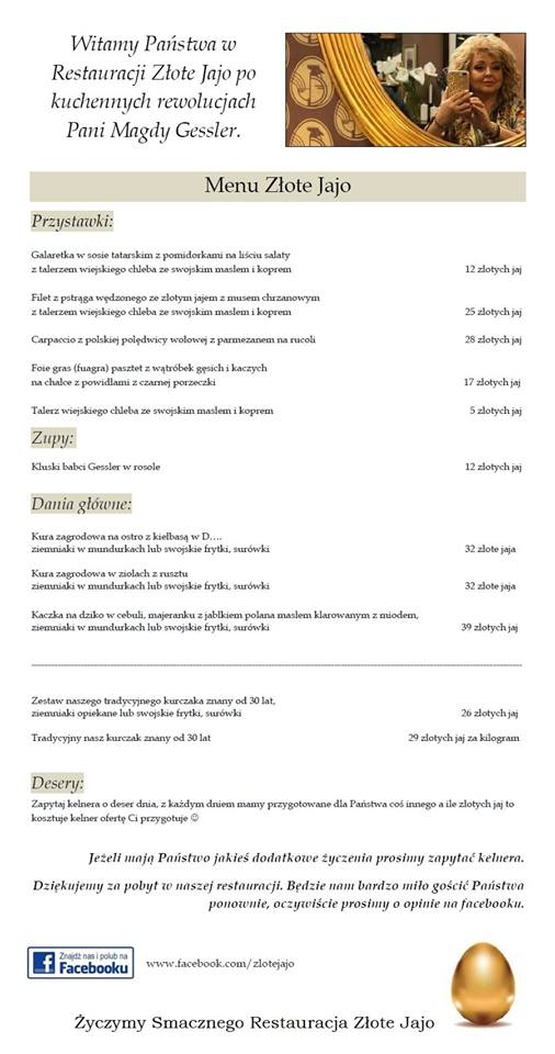 "Zapraszamy wszystkich gości do spróbowania złotych potraw w złotym jaju, najlepiej prosimy o rezerwację stolików :) O wszystkich szczegółach informujemy Państwa na bieżąco na naszym facebooku"