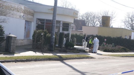 Policjanci wykonują czynności polegające na wykryciu sprawcy, bądź sprawców, policja bada również jaką metodą został uszkodzony bankomat.