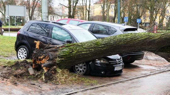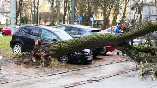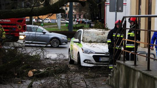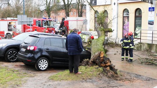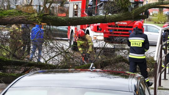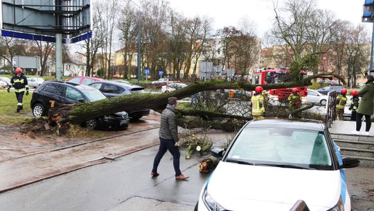 Strażacy mają już dziś za sobą pierwsze interwencje związane z silnym wiatrem. Np przy ulicy Pestalozziego w Elblągu około godziny 13.00 silny wiatr powalił drzewo na zaparkowane samochody.