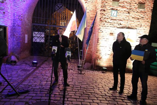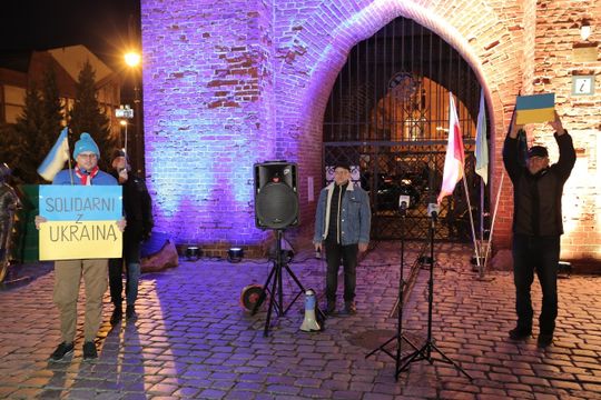 "Dobry wieczór, bo tak się mówi wieczorem, ale to nie jest dobry wieczór dla Ukrainy, bardzo dziękuje mieszkańcom Elbląga, że są solidarni z Ukrainą" - powiedział Mirosław Prytuła z elbląskiego koła związku Ukraińców w Polsce.