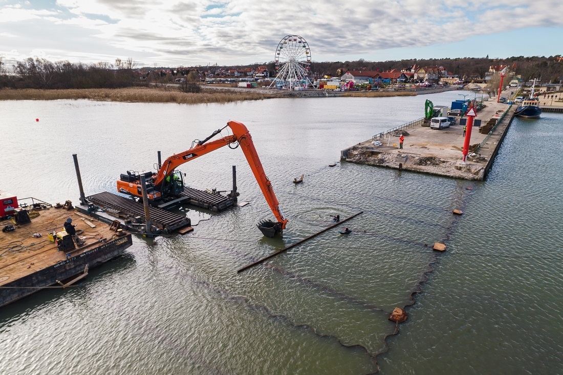 – W ramach przedsięwzięcia mamy do zrealizowania pirs wykonany w konstrukcji grodzy ze ścianek szczelnych. Obecnie zainstalowaliśmy nie tylko wszystkie ścianki szczelne, a także kleszcze i ściągi. Można powiedzieć, że zasadniczy etap konstrukcji grodzy mamy za sobą. Jesteśmy gotowi do rozpoczęcia robót zasypowych – mówi Paweł Śpiewak, kierownik robót hydrotechnicznych z firmy NDI, generalnego wykonawcy prac.