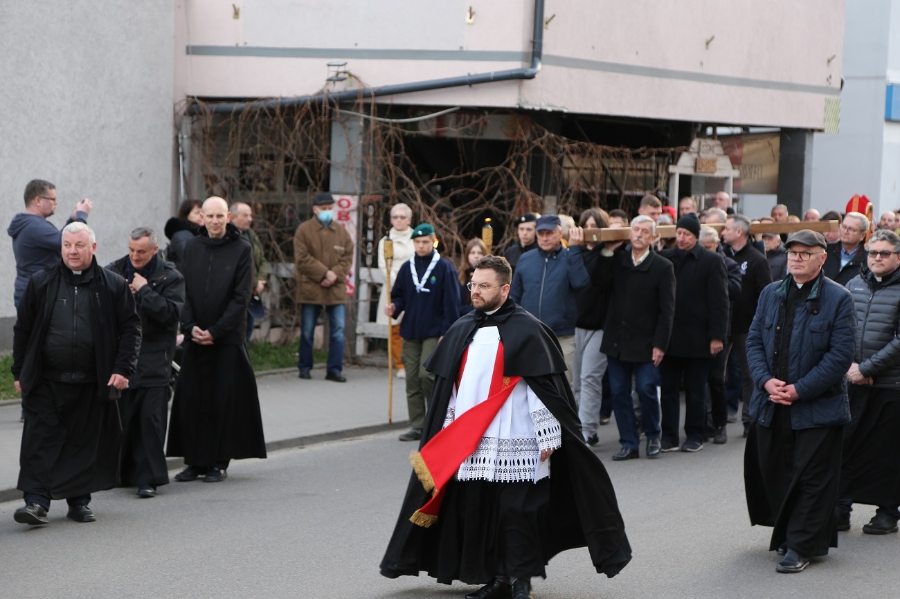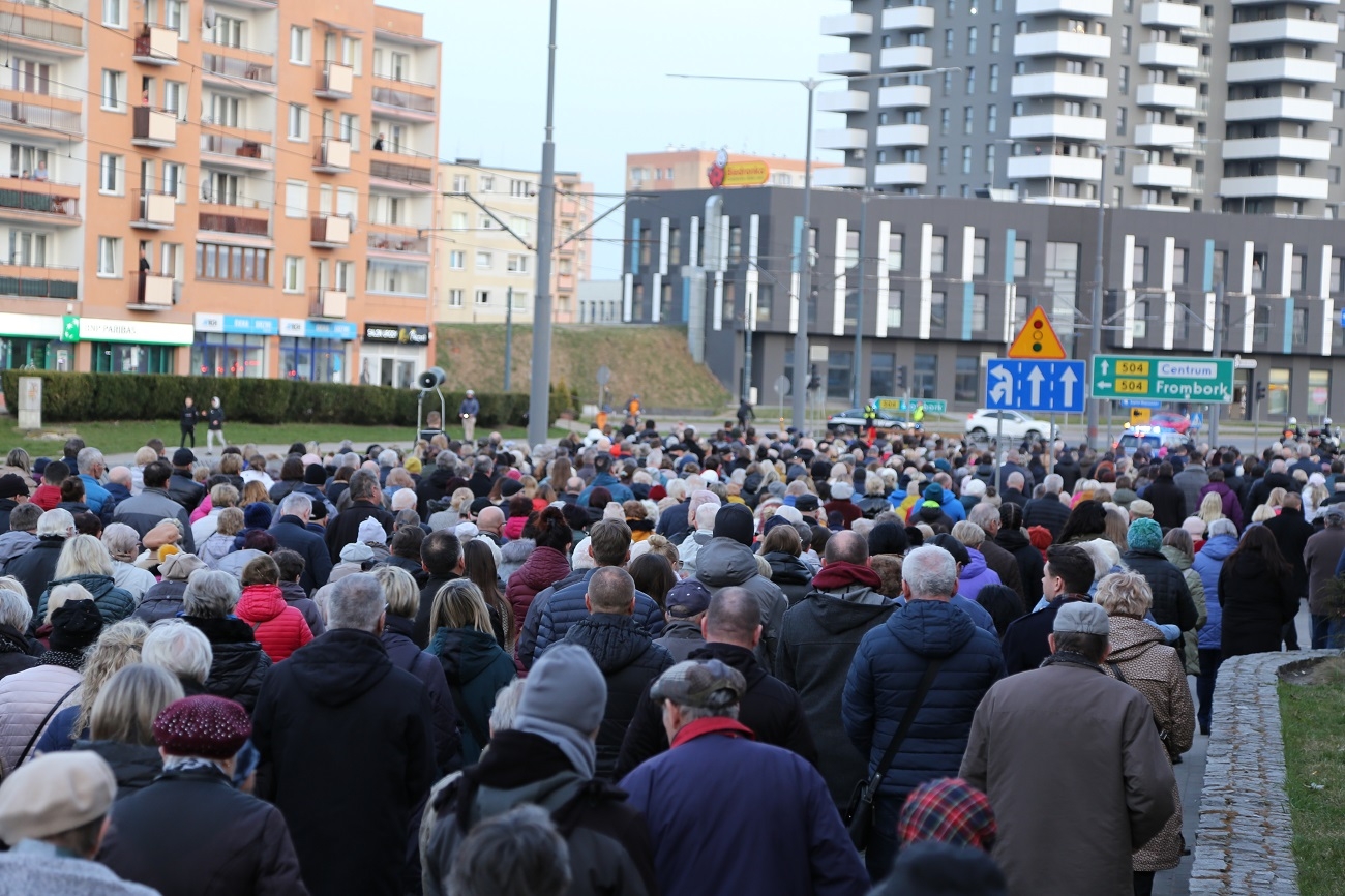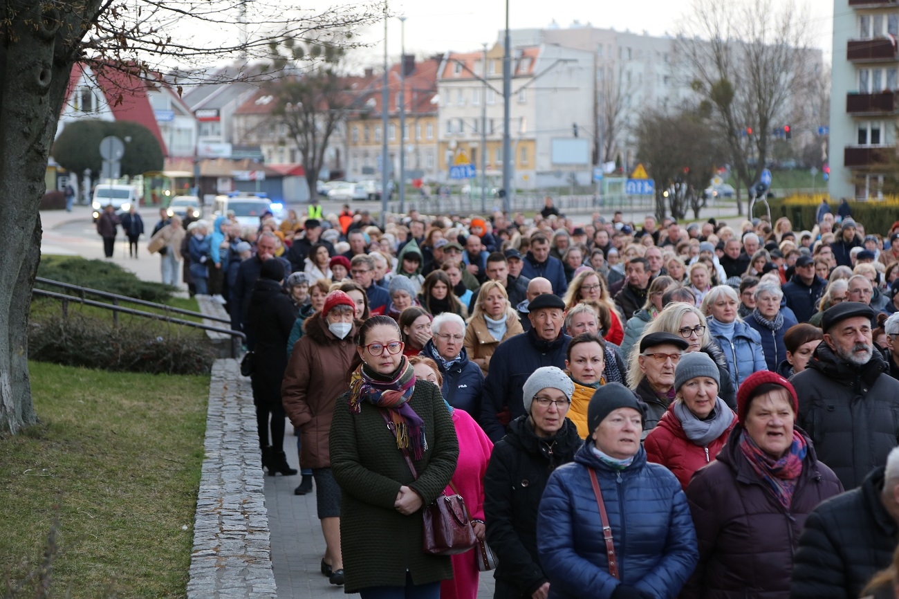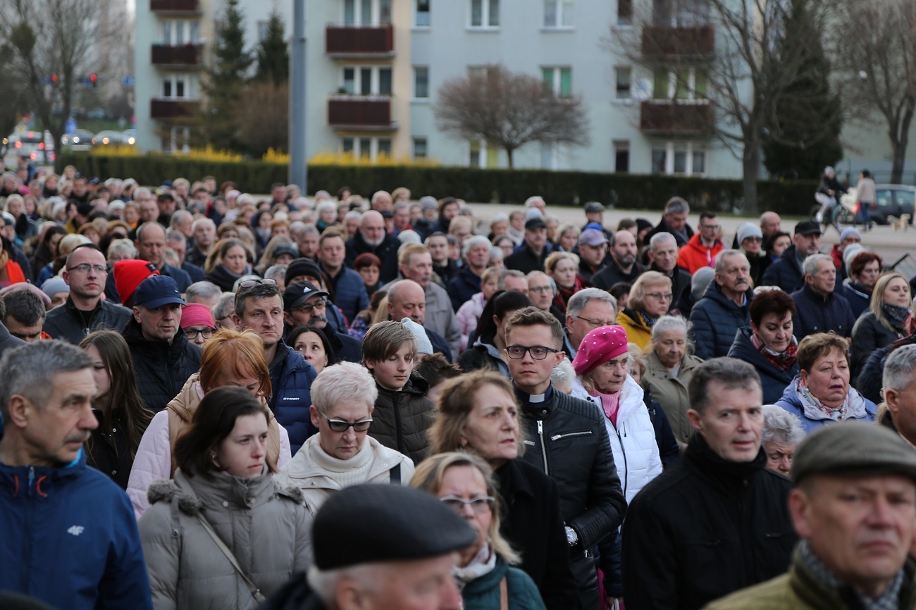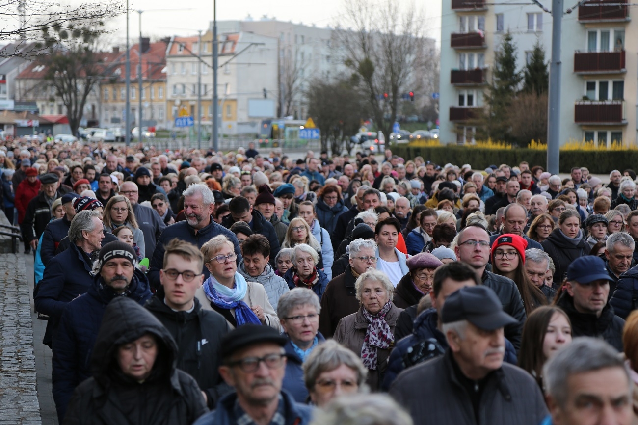 Droga Krzyżowa ruszyła o godzinie 19.00, przy kościele Matki Bożej Królowej Polski (ul. Robotnicza). Stamtąd przeszła ulicami płk. Dąbka, 12 Lutego, Hetmańską i Giermków w stronę katedry św. Mikołaja. Drogę Krzyżową zabezpieczała elbląska policja.