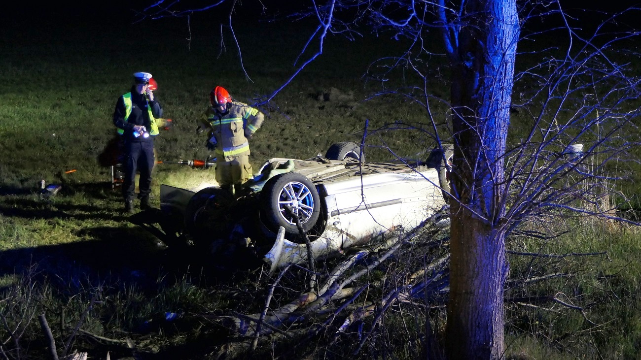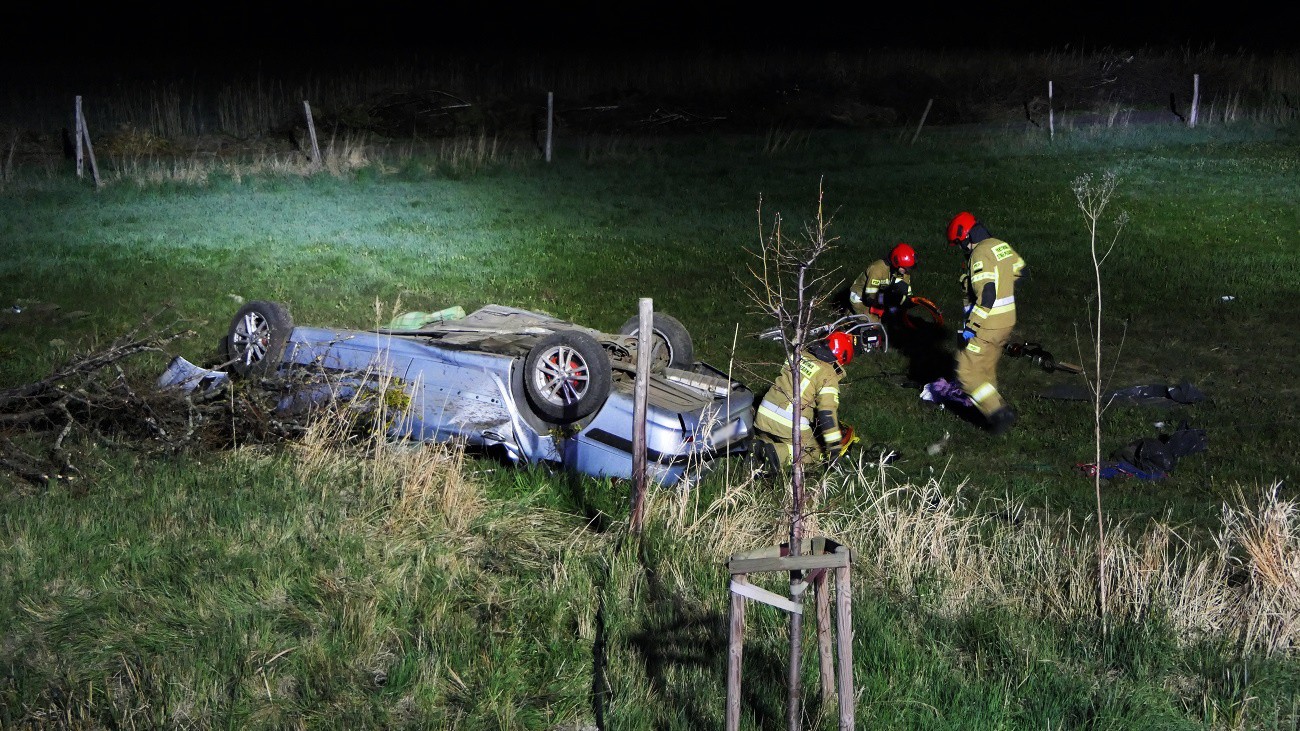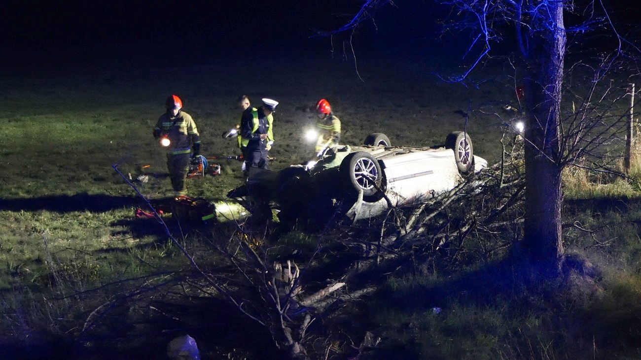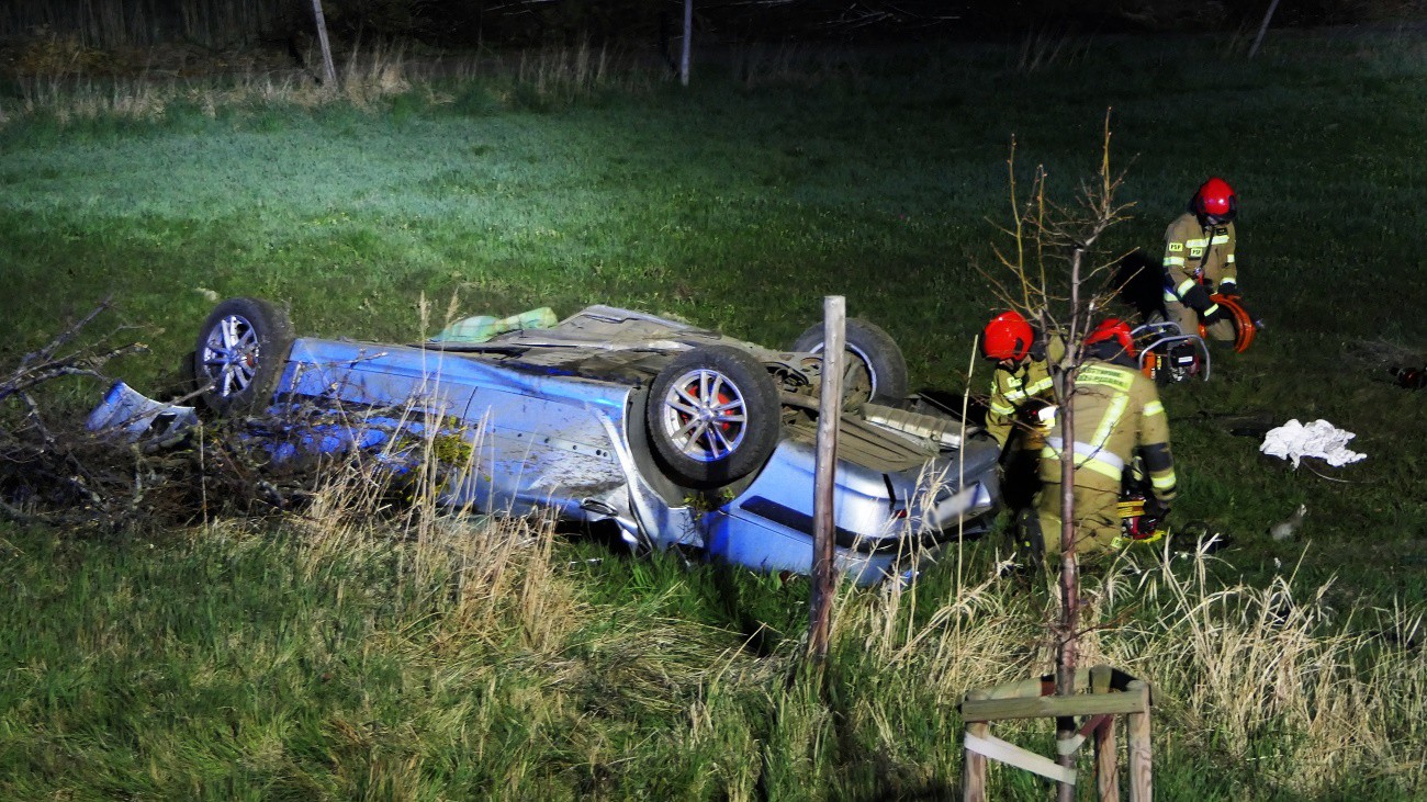 Do wypadku doszło na wysokości miejscowości Jagodno. Ze wstępnych ustaleń policji wynika, że 33-letni mężczyzna jadąc peugeotem z Tolkmicka w kierunku Elbląga z niewyjaśnionych przyczyn zjechał na przeciwległy pas ruchu, następnie do przydrożnego rowu, uderzył w drzewo i dachował.