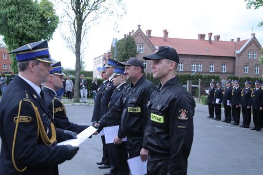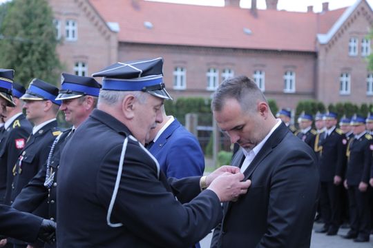 Podczas uroczystej zbiórki strażacy z powiatu elbląskiego zostali odznaczeni wyróżnieniami.