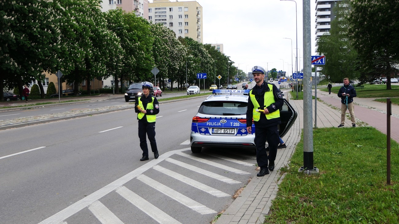 Funkcjonariusze policji zatrzymywali dziś po godzinie 10.00 na ulicy Nowowiejskiej do kontroli kierowców i badali im trzeźwość. Trzeźwi kierowcy otrzymywali od przedstawicieli Urzędu Miasta (Krzysztof Konert, Małgorzata Borzęcka-Florek) ulotki informacyjne oraz inne gadżety.