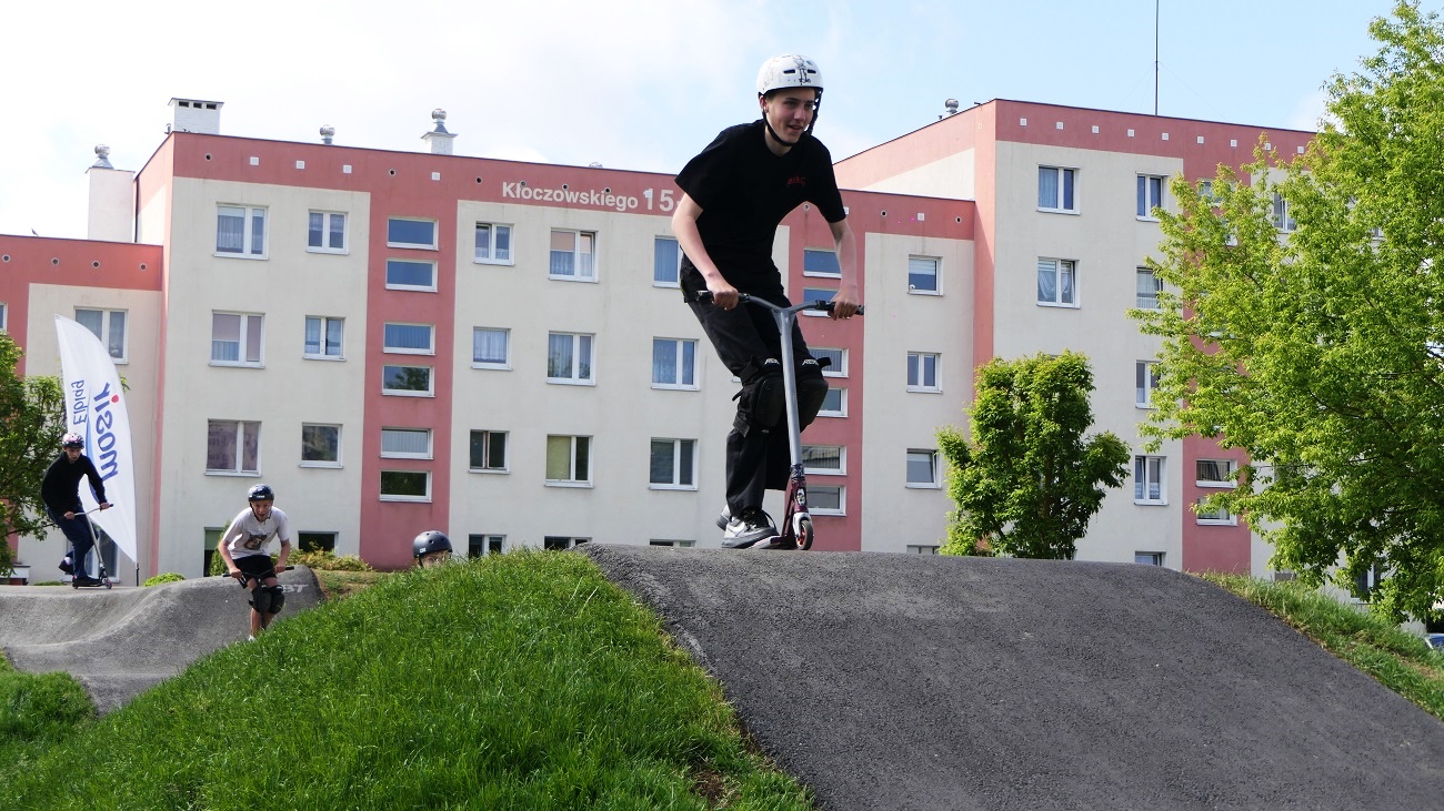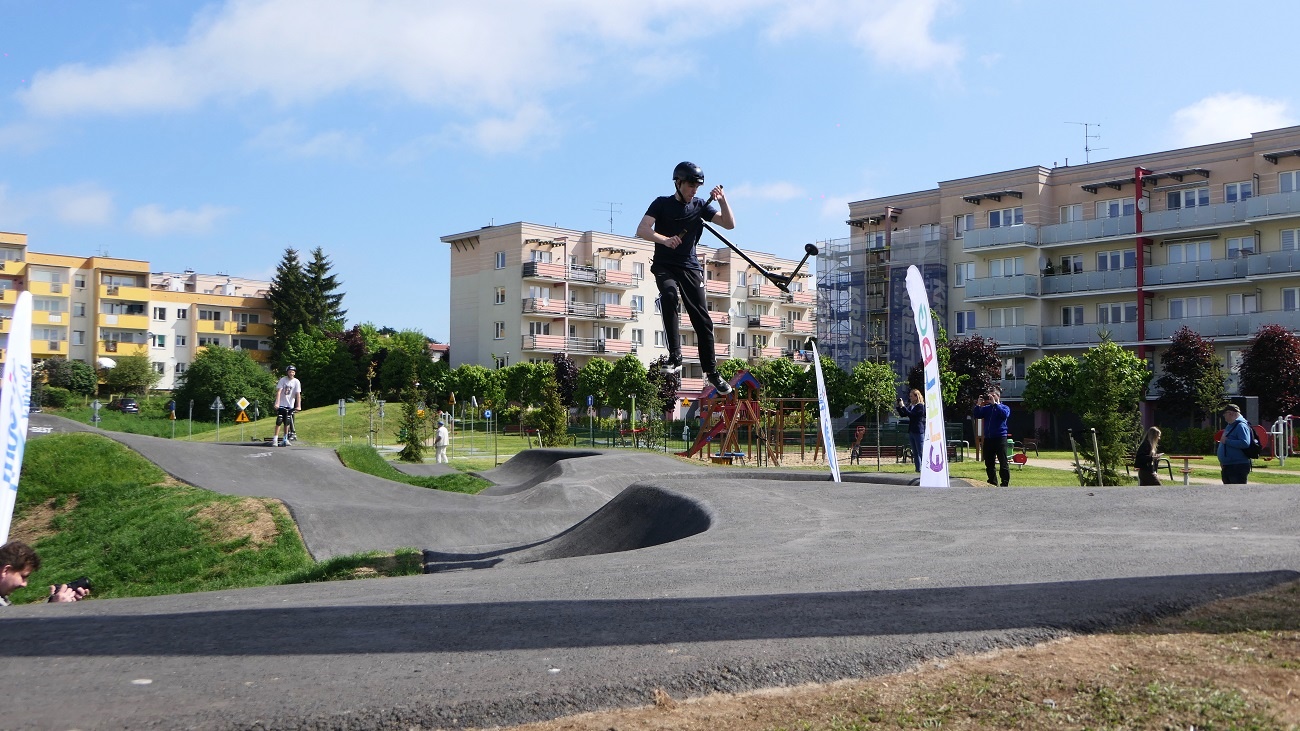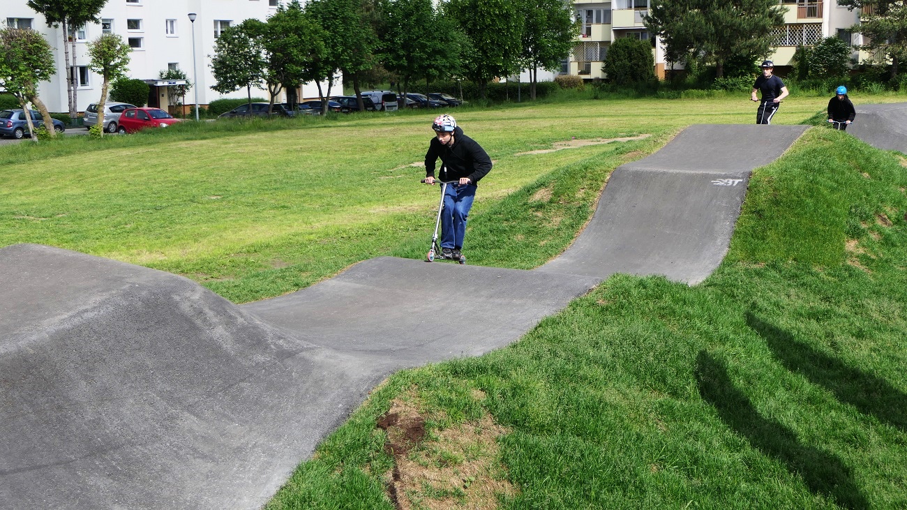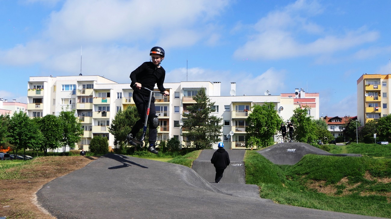 W ramach robót zostały wykonane prace rozbiórkowe i demontaże, roboty związane z wykonaniem toru typu PUMPTRACK o długości minimum 200 m wraz z zagospodarowaniem terenu, roboty liniowe w zakresie odwodnienia, sieci elektrycznych oraz teletechnicznych, montaż kamery monitoringu, dostawa i montaż obiektów małej architektury (ławki, kosze na śmieci, stojaki rowerowe), dostawa i montaż tablicy informacyjnej z regulaminem oraz dostawa i montaż tablicy pamiątkowej Budżetu Obywatelskiego 2021.