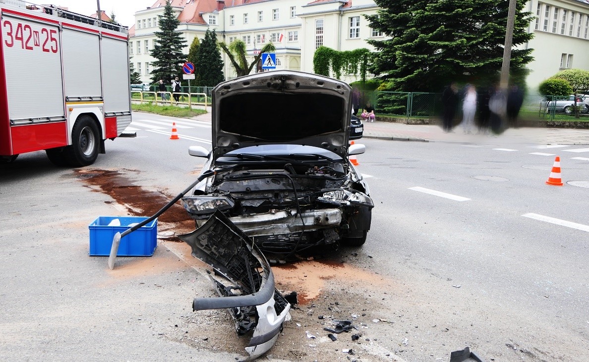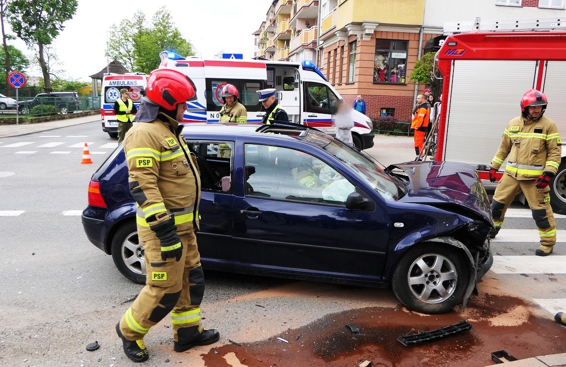 AKTUALIZACJA: Zdarzenie zostało zakwalifikowane jako kolizja drogowa. Kierująca vw golfem kobieta od roku posiadała prawo jazdy. Zatrzymano jej owe prawo jazdy a do sądu skierowano wniosek o ukaranie za spowodowanie kolizji.