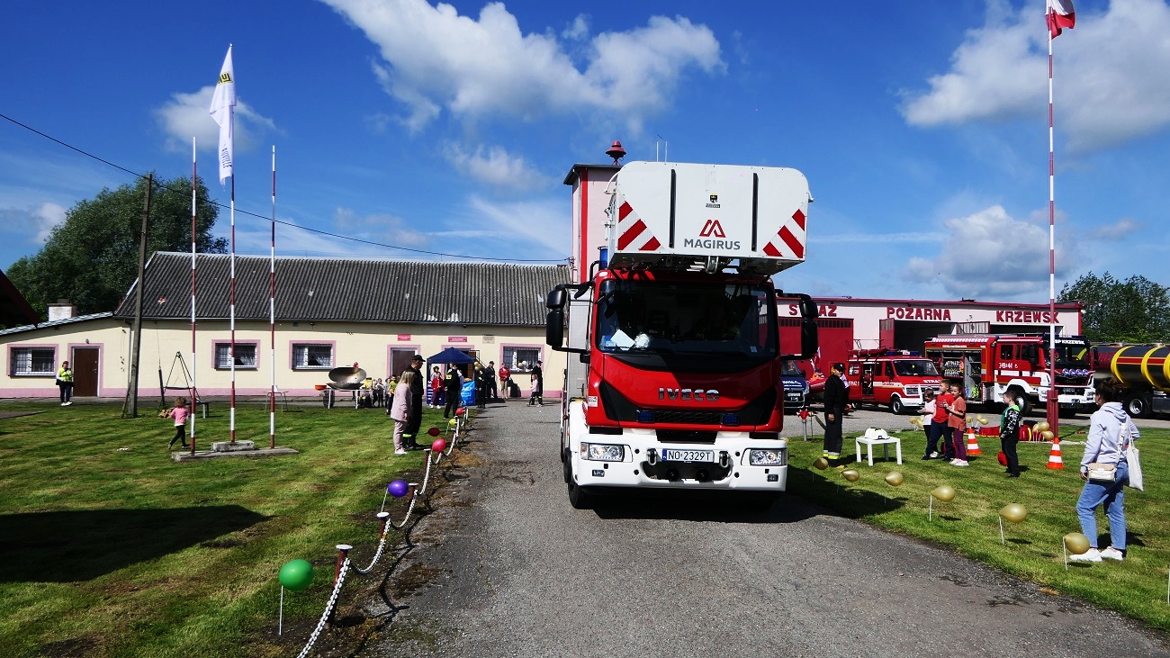 Strażacy z Krzewska otrzymali również dziś wsparcie przy pikniku od Komendy Miejskiej Państwowej Straży Pożarnej w Elblągu, która zadysponowała na event wóz strażacki wyposażony w drabinę. Ponadto strażacki piknik wsparła Rafał Lasek - Piekarnia Markusy oraz Beata Bajdan - Rzeźnia Żurawiec.